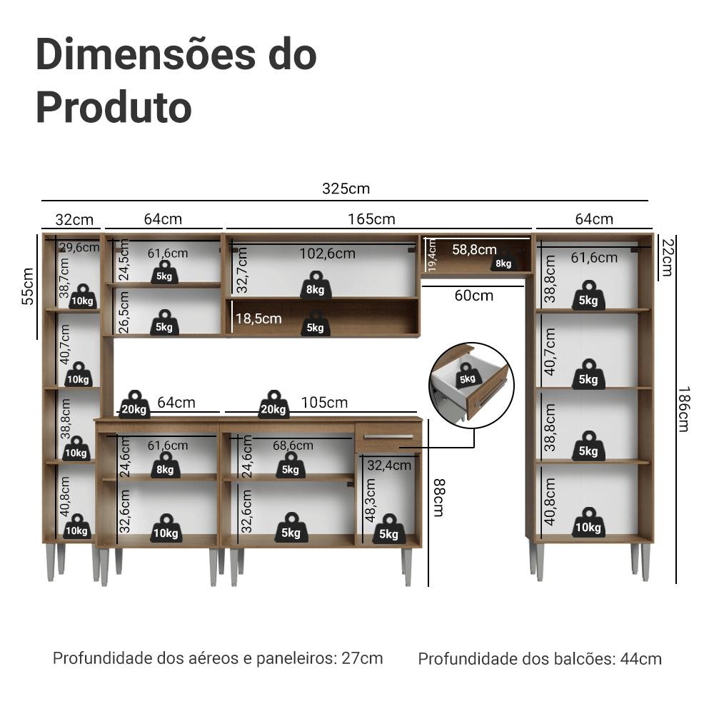 Armário de Cozinha Completa 325cm Rustic/Cinza Emilly Madesa 07