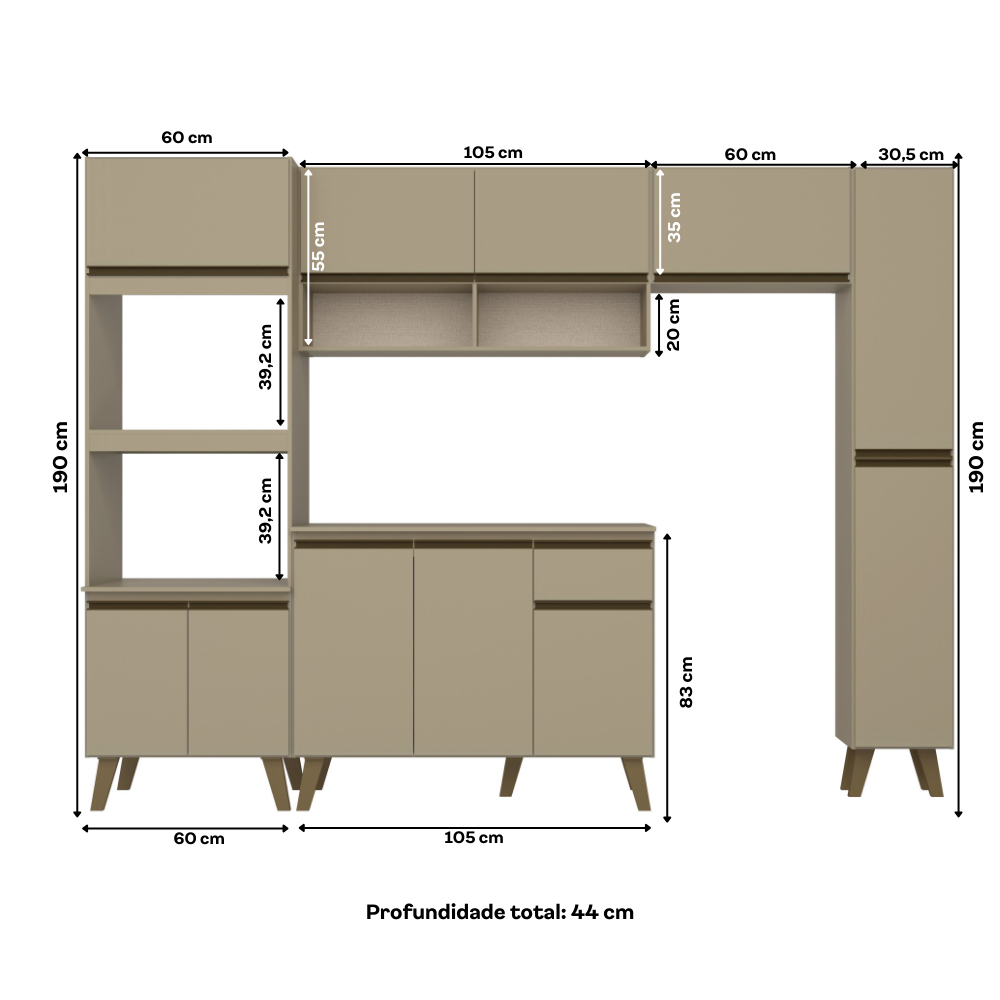 Armário de Cozinha Completa Atlanta Plus Amêndoa