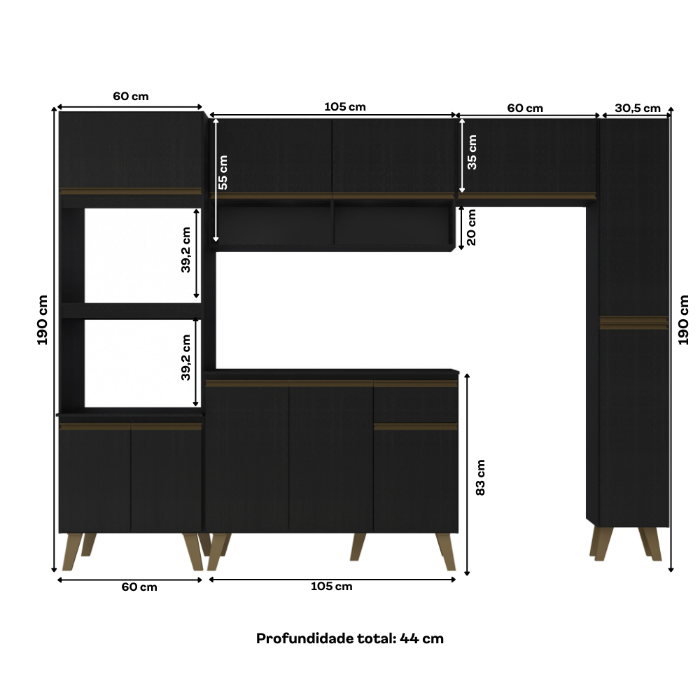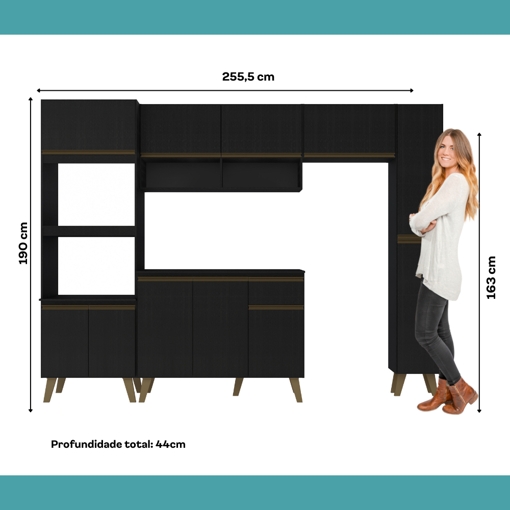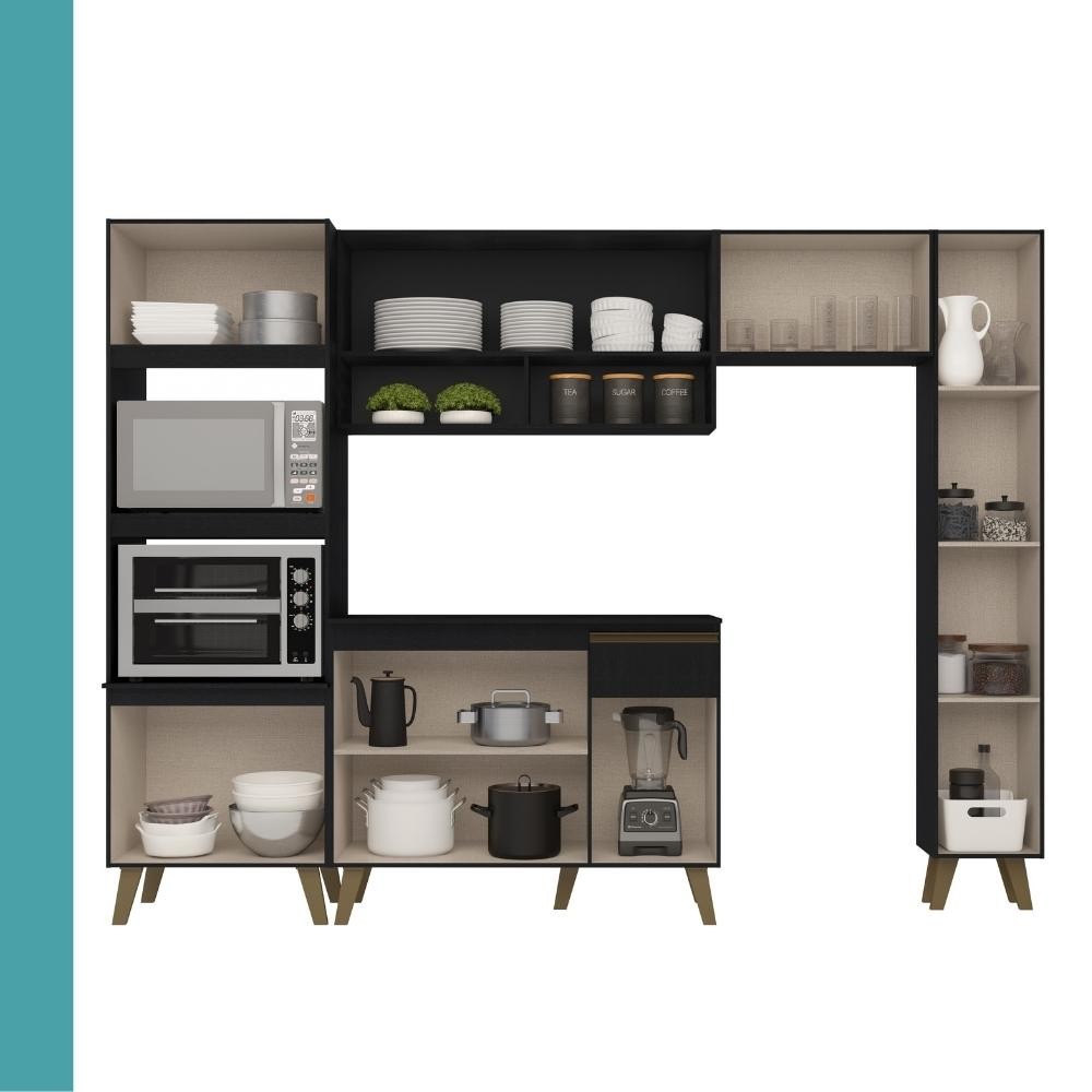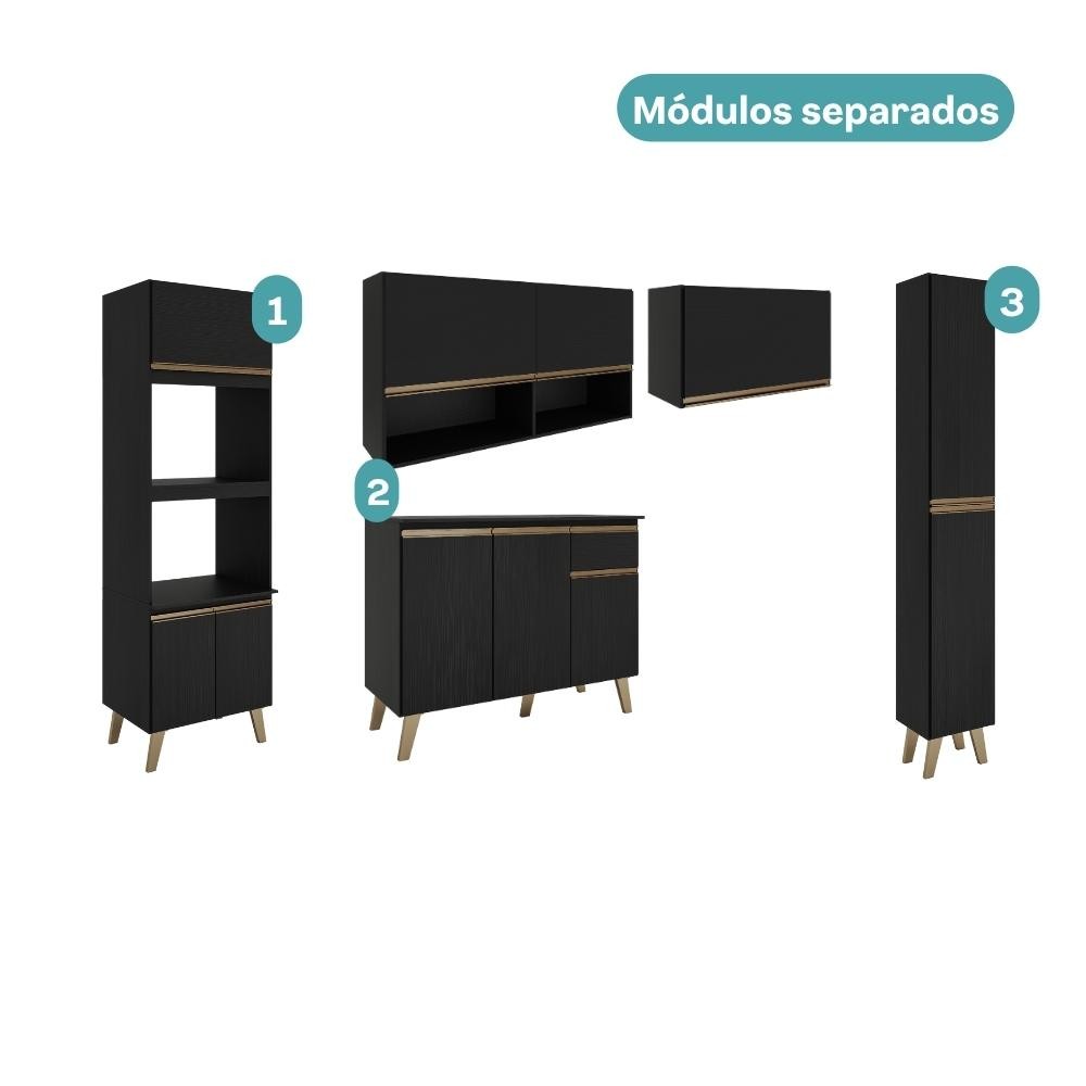 Armário de Cozinha Completa Atlanta Plus Preto Touch