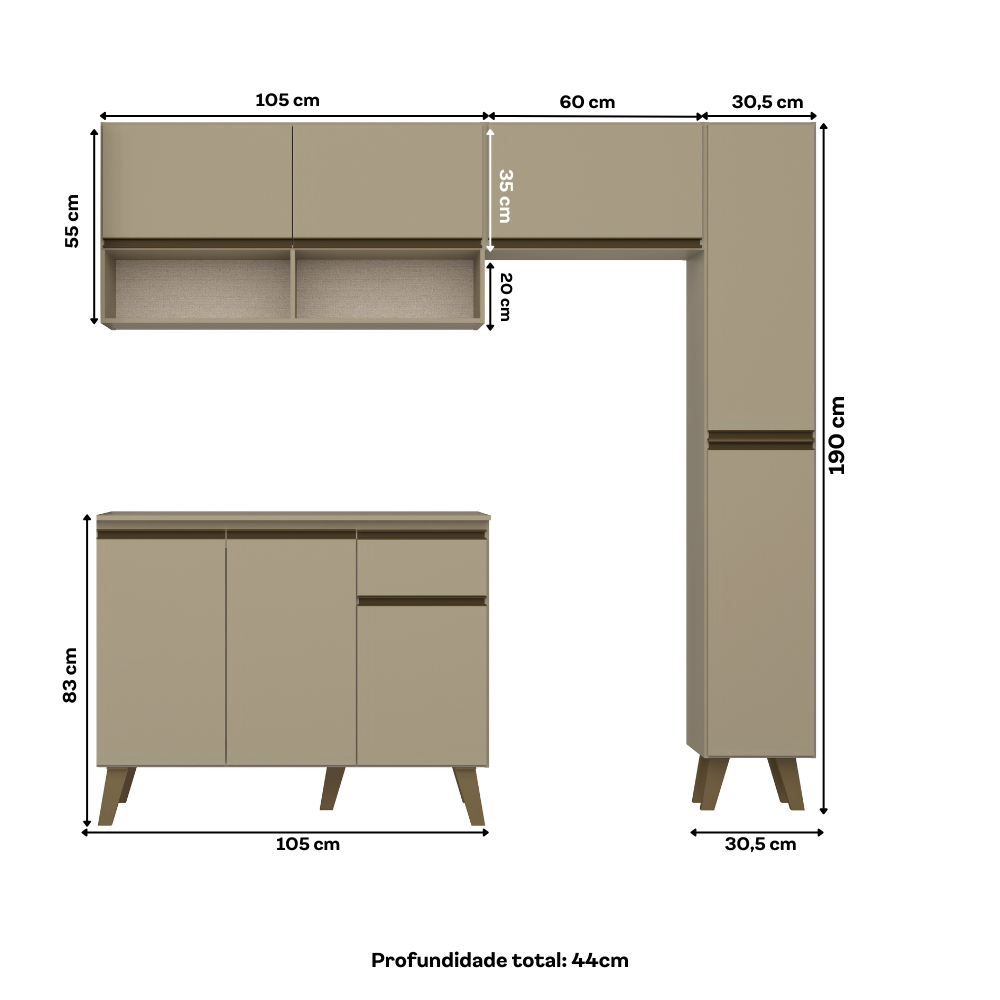 Armário de Cozinha Completa Atlanta Slim Amêndoa