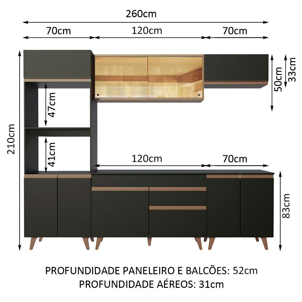 Armário de Cozinha Completa Madesa Reims 260002 com Balcão - Preto/Rustic