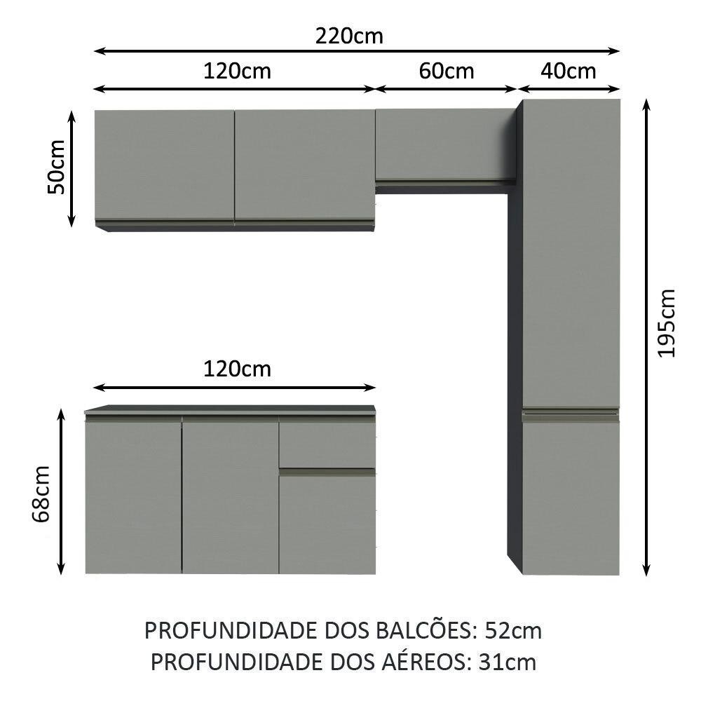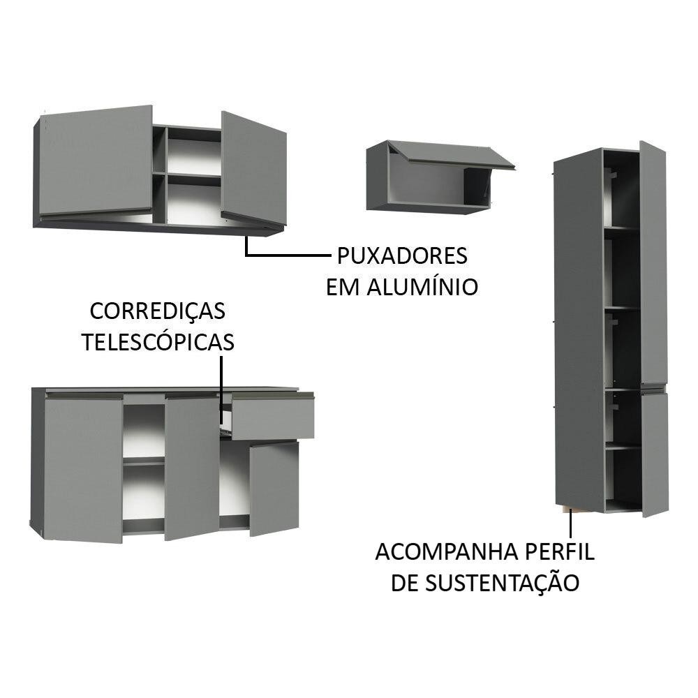 Armário de Cozinha Completa Suspenso 220cm Cinza Nice Madesa 04