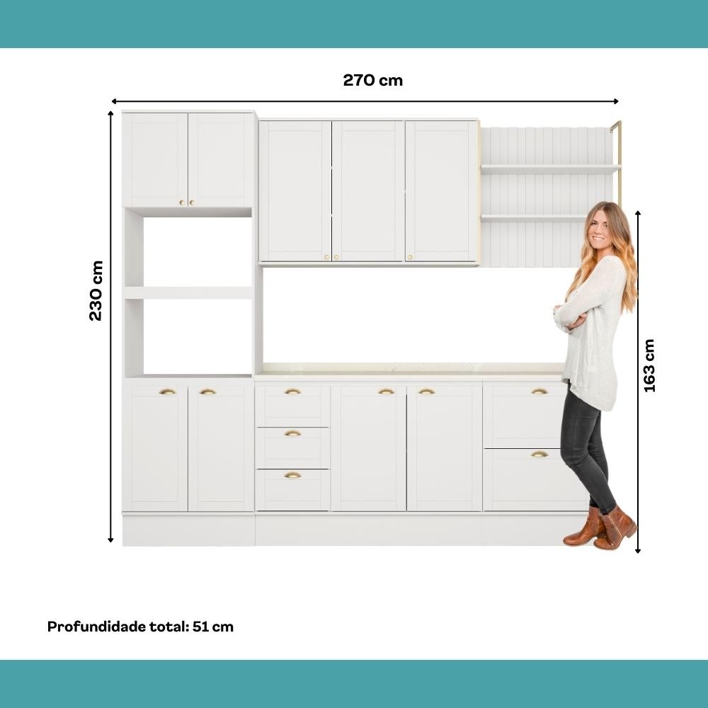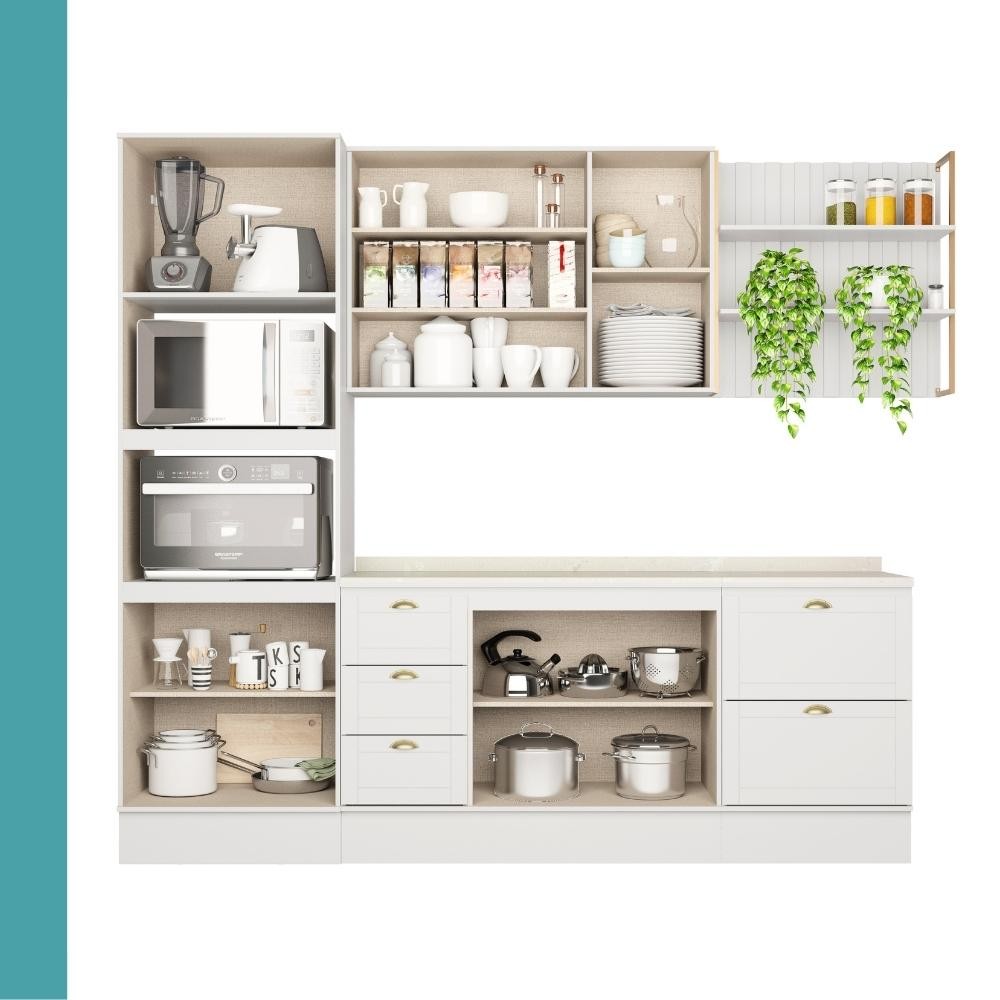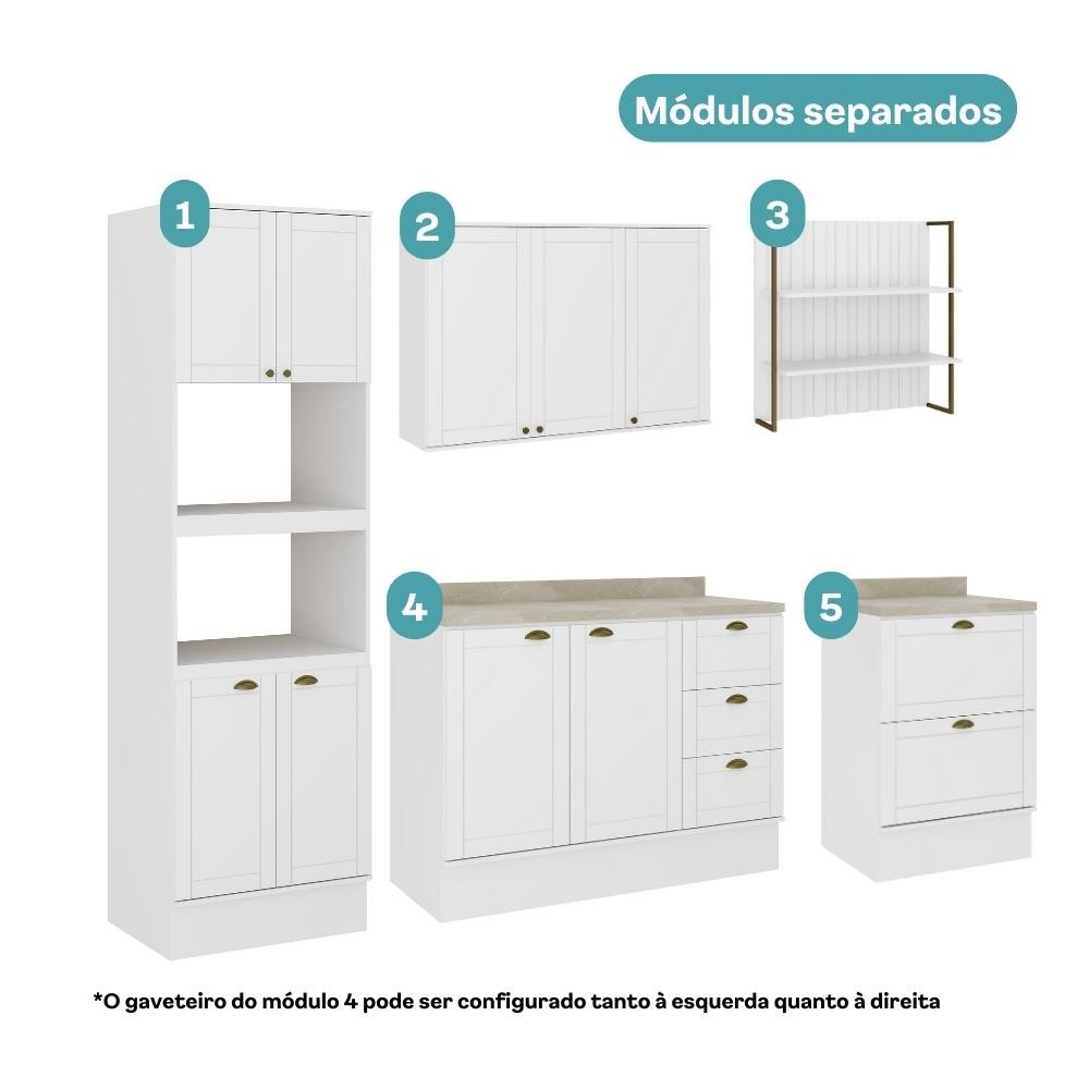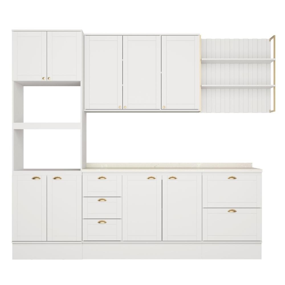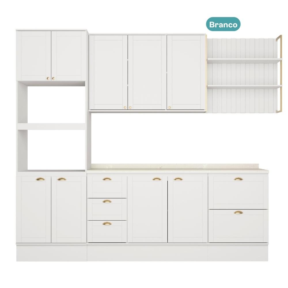 Armário de Cozinha Completa c Balcão Milla Glimmer Carraro Branco