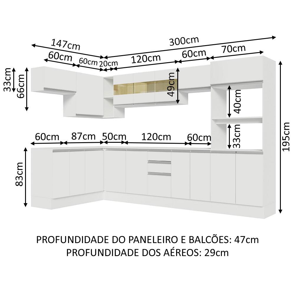 Armário de Cozinha Completa de Canto 100% MDF 447cm Branco Smart Madesa 02
