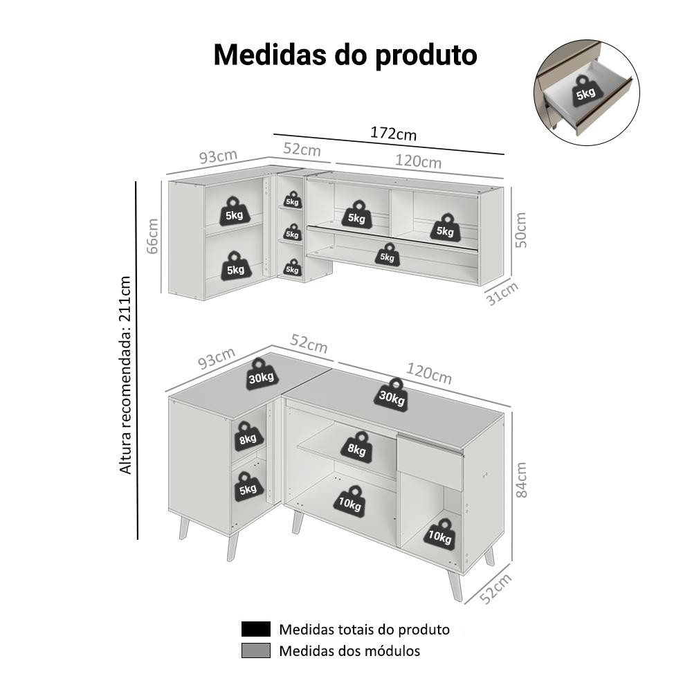 Armário de Cozinha Completa de Canto 265 cm Crema Nice Madesa 02