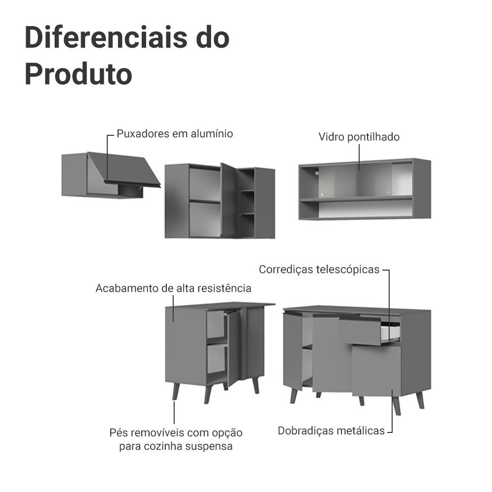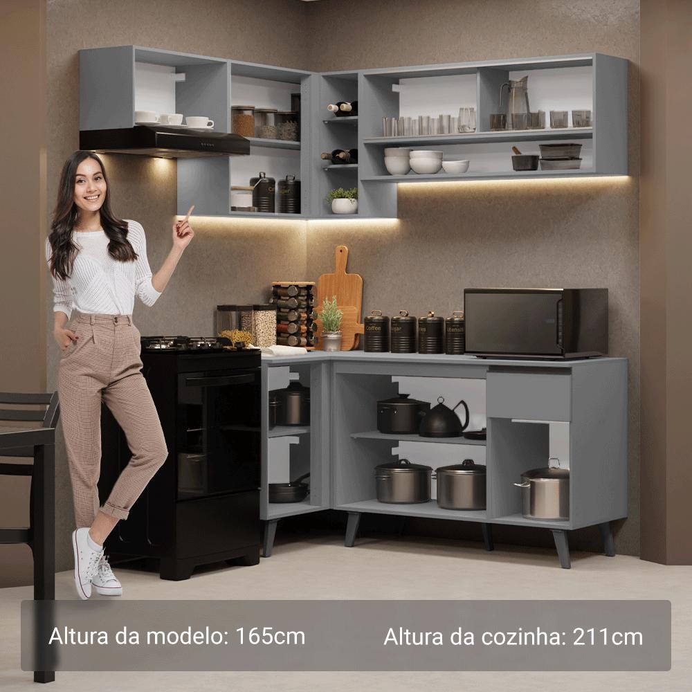 Armário de Cozinha Completa de Canto 325cm Cinza Nice Madesa 03