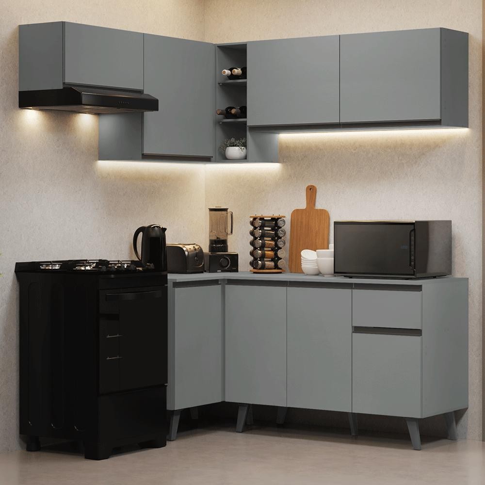 Armário de Cozinha Completa de Canto 325cm Cinza Nice Madesa 06