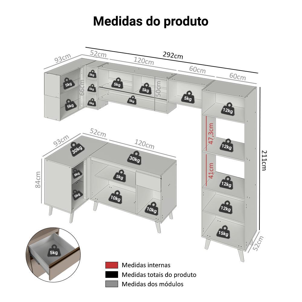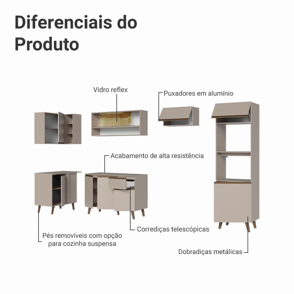 Armário de Cozinha Completa de Canto 385cm Crema Nice Madesa 04