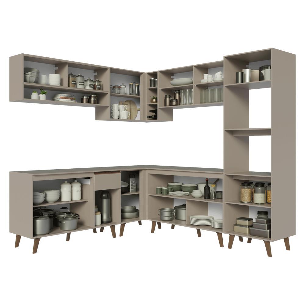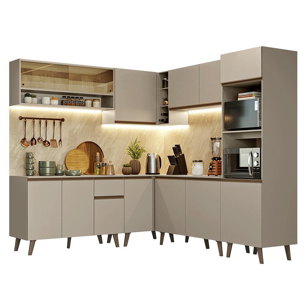 Armário de Cozinha Completa de Canto 445cm Crema Nice Madesa 01