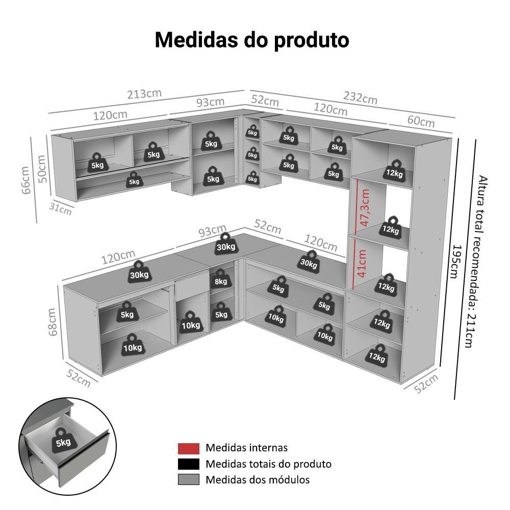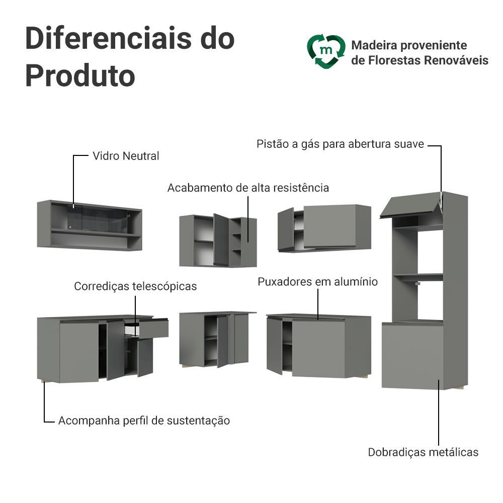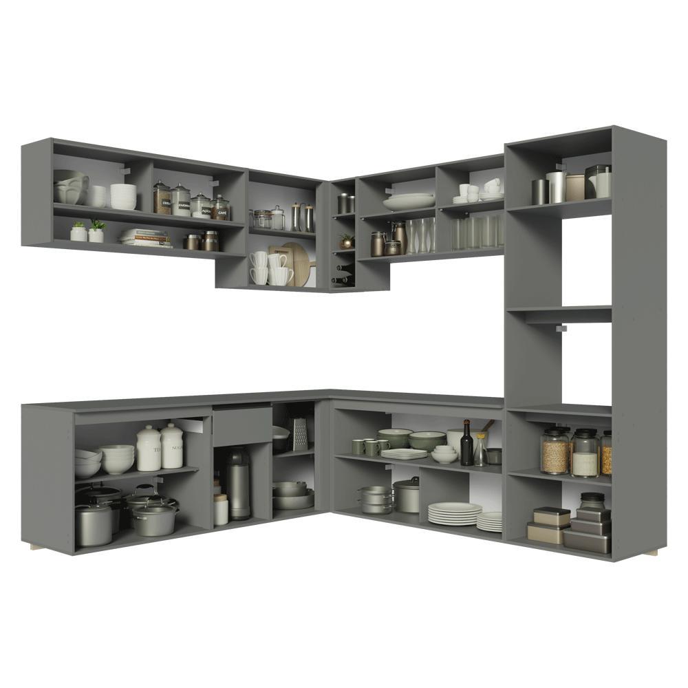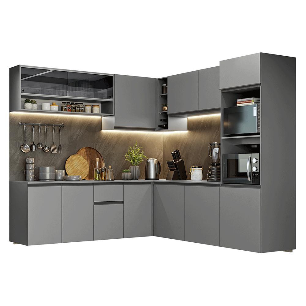 Armário de Cozinha Completa de Canto 445cm Suspensa Cinza Nice Madesa 04