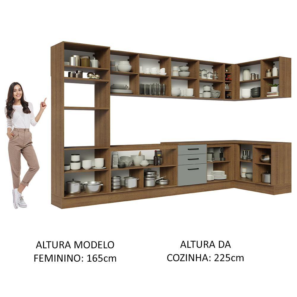 Armário de Cozinha Completa de Canto 499cm Rustic/Cinza Agata Madesa 01