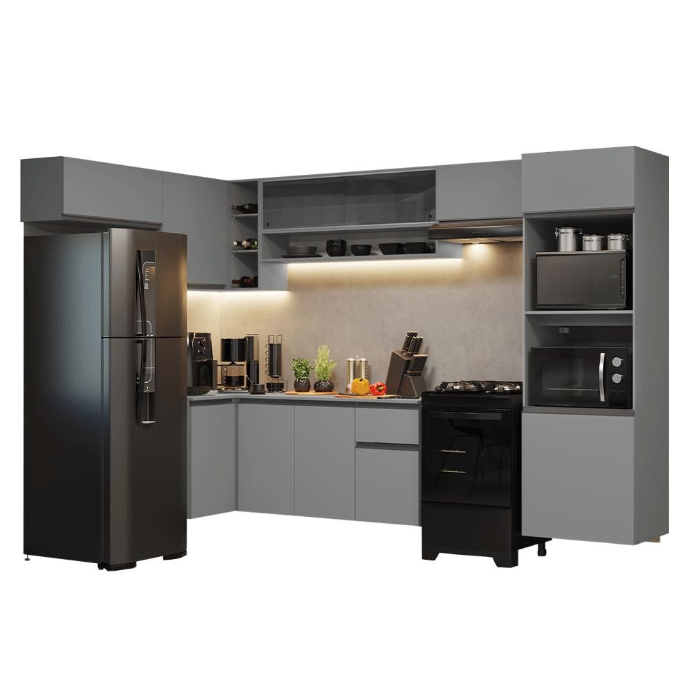 Armário de Cozinha Completa de Canto Suspenso 465cm Cinza Nice Madesa 07