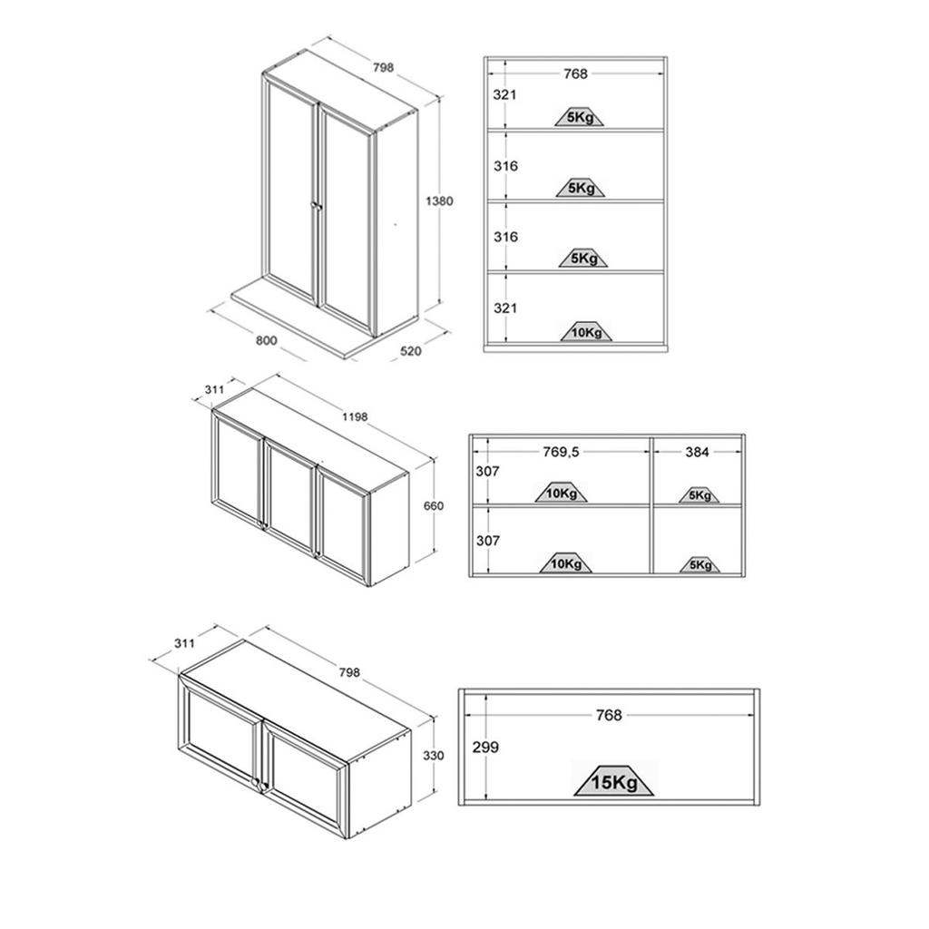 Armário de Cozinha Completo Ditália Berlim 5 Peças CV/BR B5