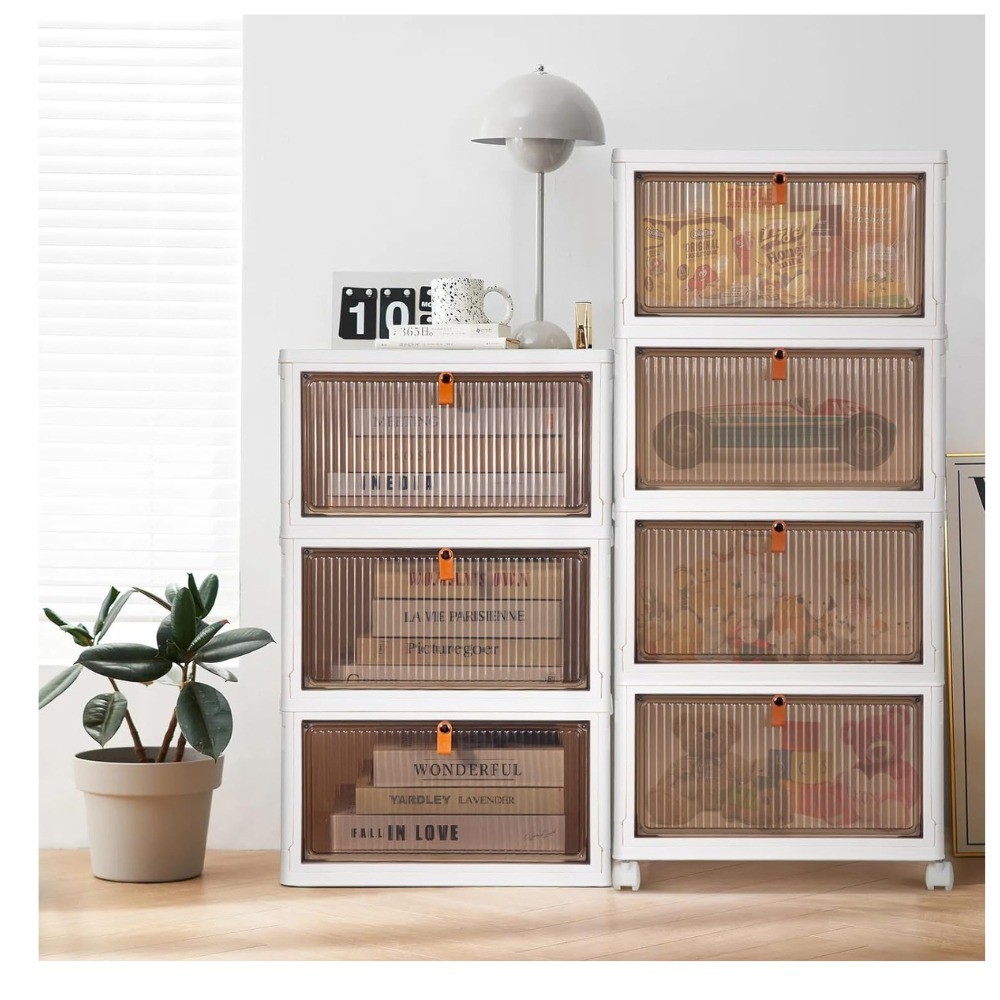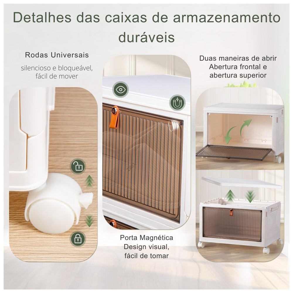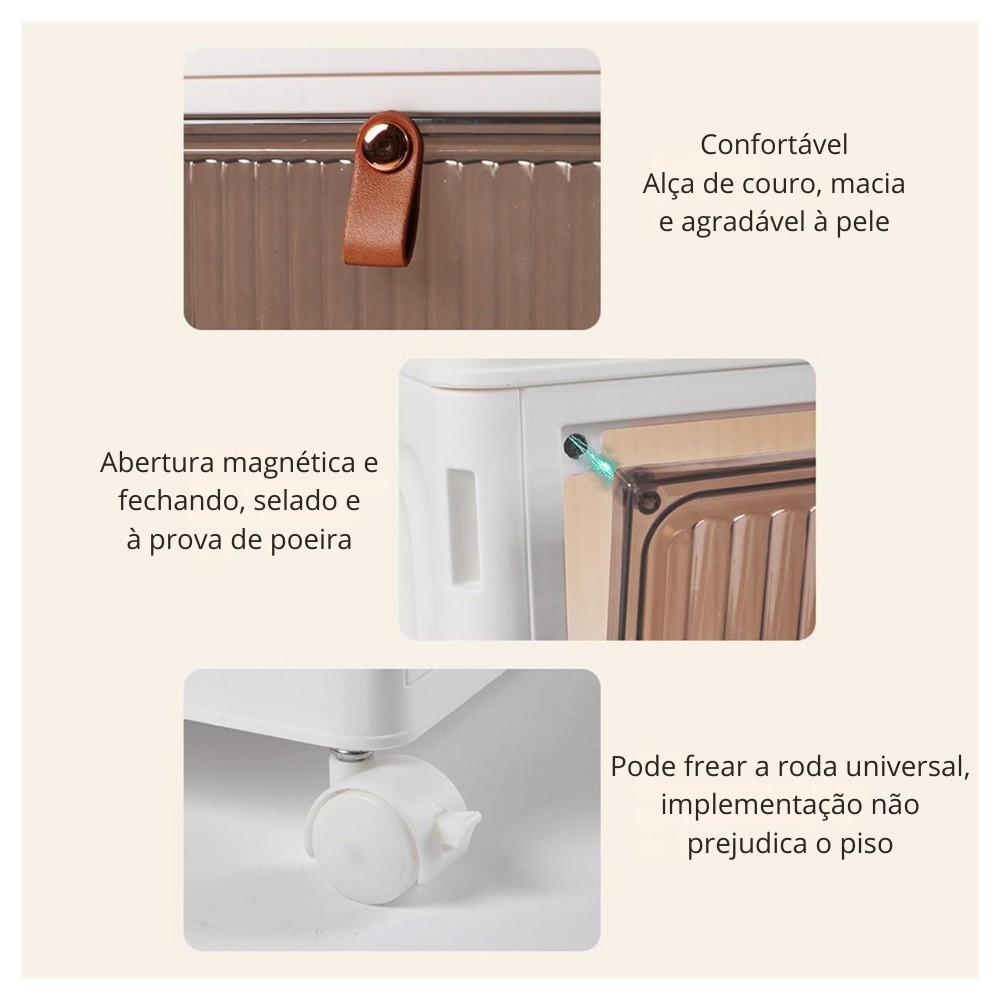 Armário de armazenamento dobrável de quatro compartimentos com porta magnética empilhável sapato caixa conjunto armário