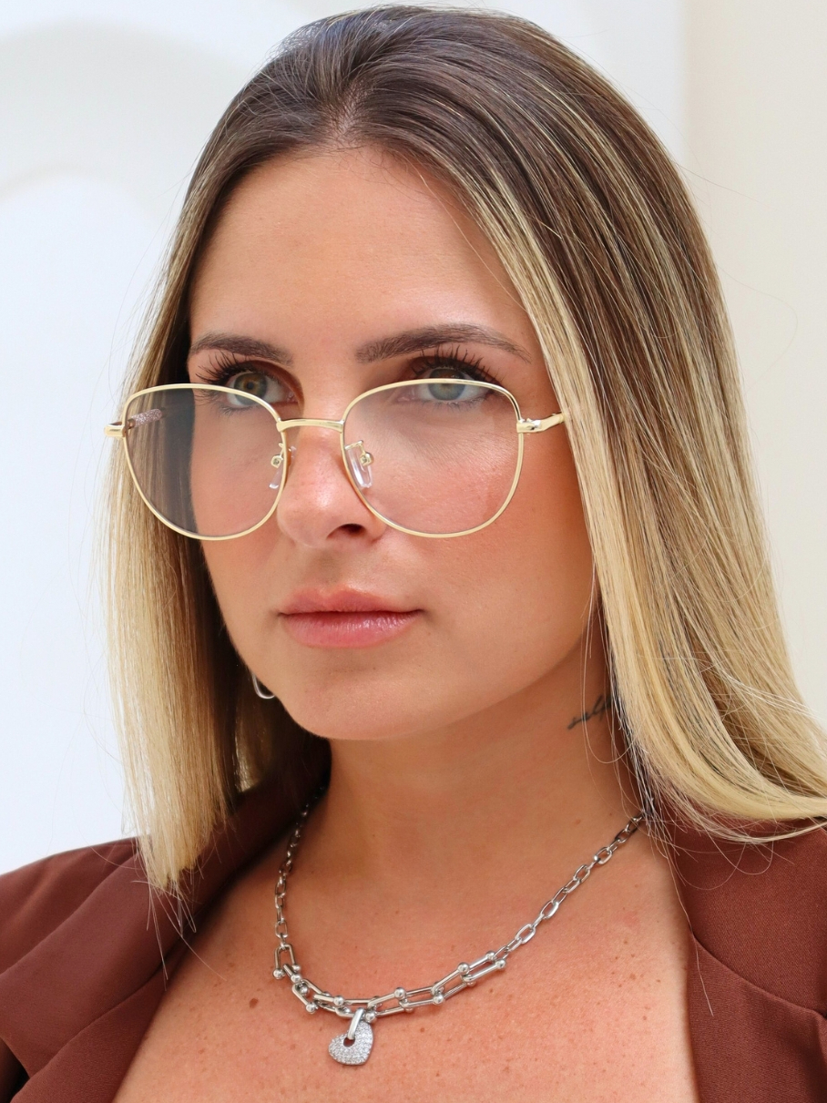 Armação de Óculos de Grau Aniston Gatinho Metal Premium Clássico Aniston Retrô uv400 Feminino