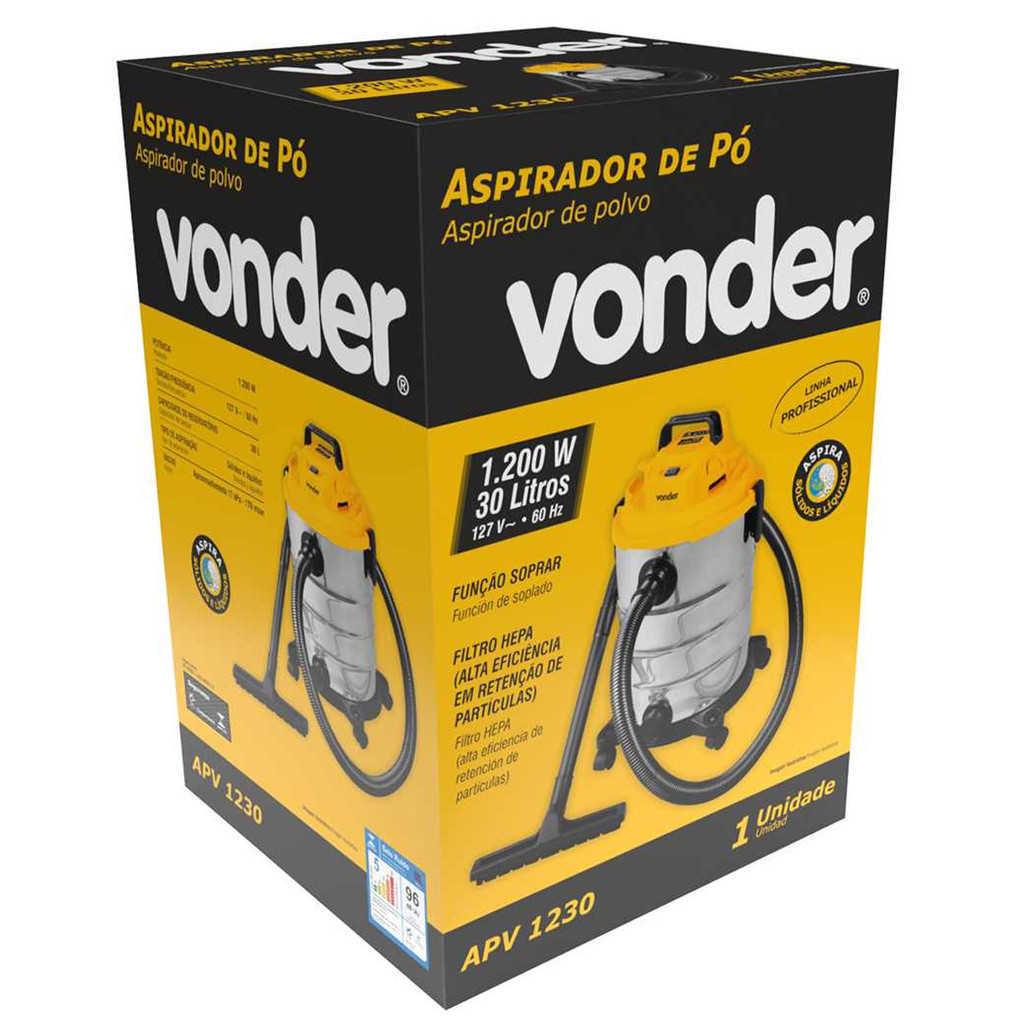 Aspirador De Pó e Água Profissional Inox 1200W Função Soprador 30 Litros APV 1230 Vonder