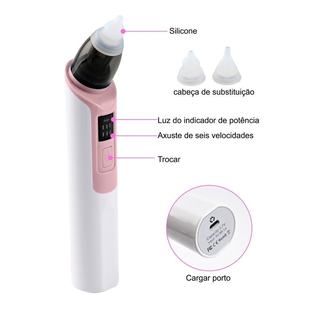 Aspirador Nasal Recarregável Silicone Macio Para O Nariz Do Bebê
