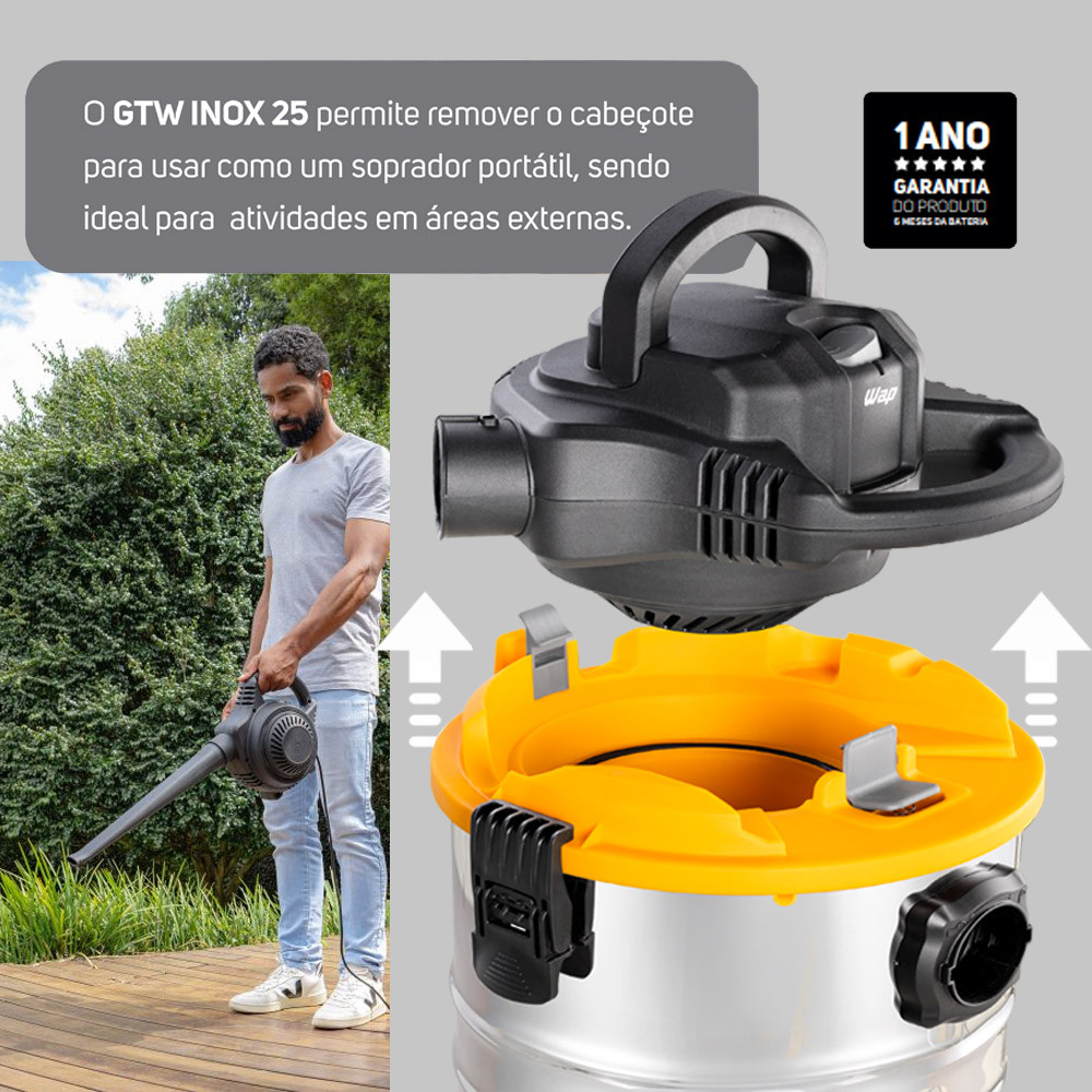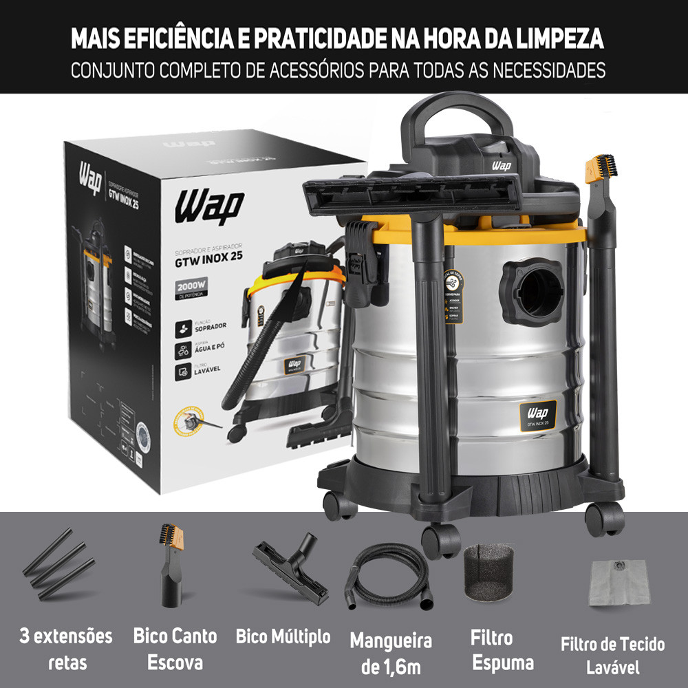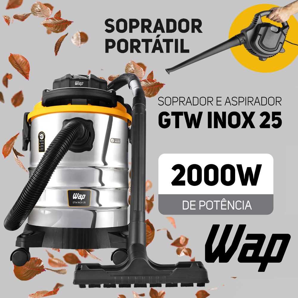Aspirador de Pó e Água Barril Inox 25 Litros 2000W Com Soprador Portatil GTW INOX 25 Wap