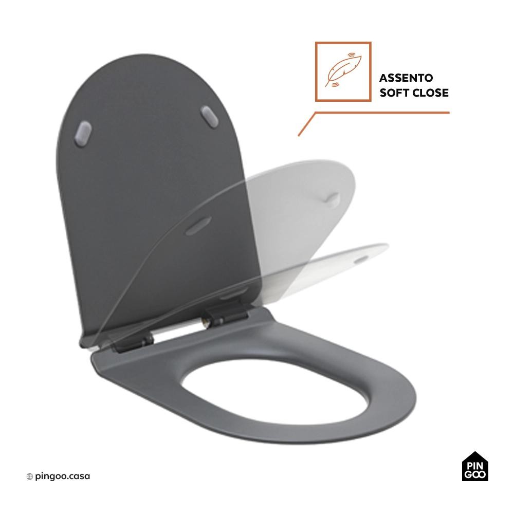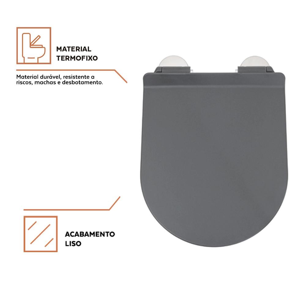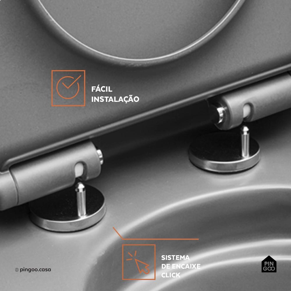 Assento Termofixo com Soft Close para Vaso Sanitário Amazonita Pingoo - Cinza