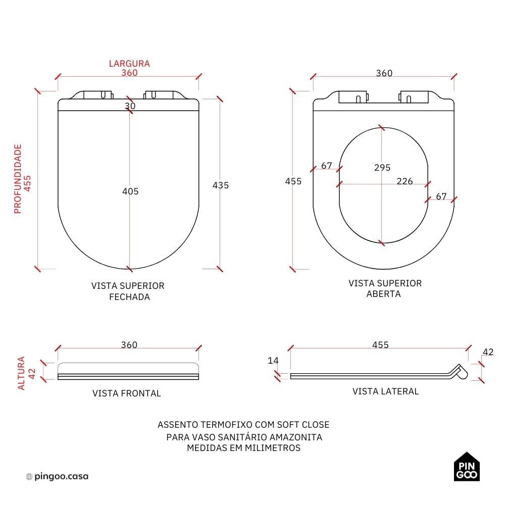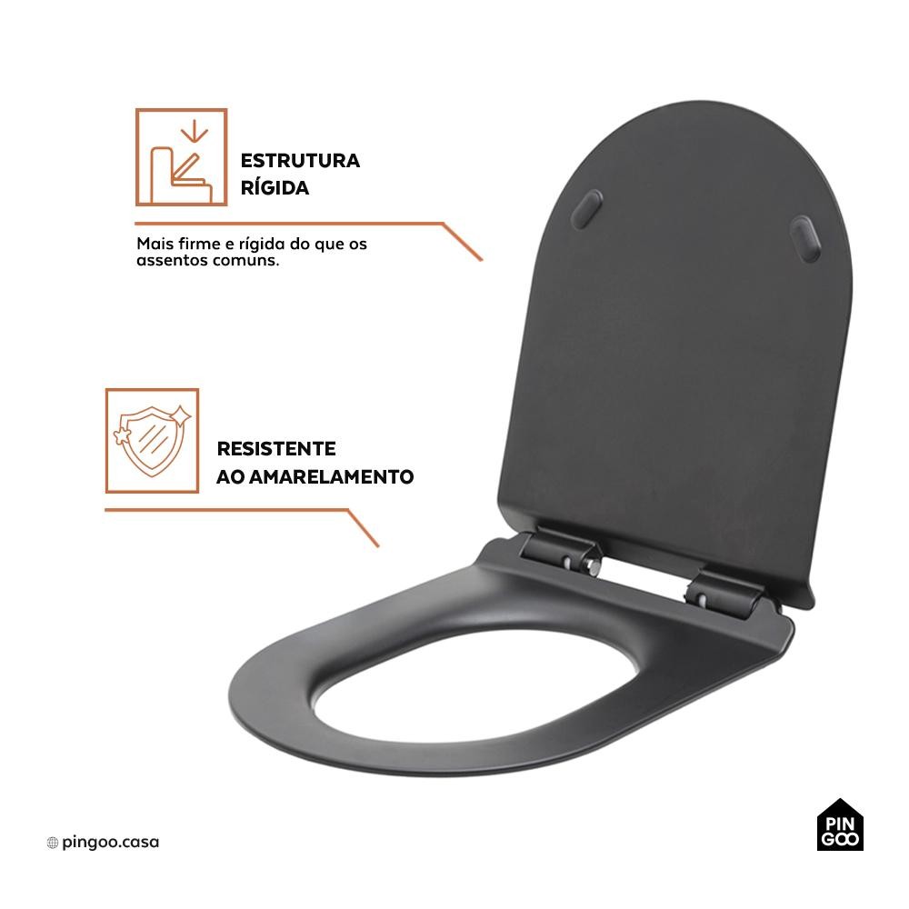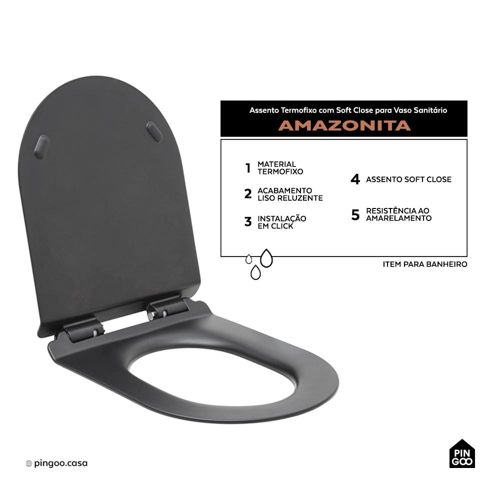 Assento Termofixo com Soft Close para Vaso Sanitário Amazonita Pingoo - Preto