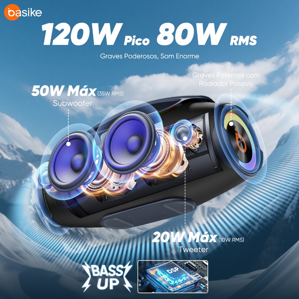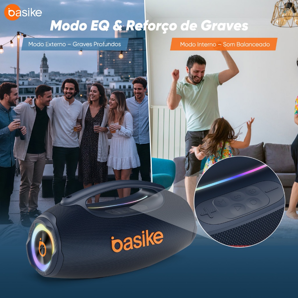 Astgn X Basike Caixa de Som Bluetooth Estéreo 80W Potente IPX6 TWS RGB
