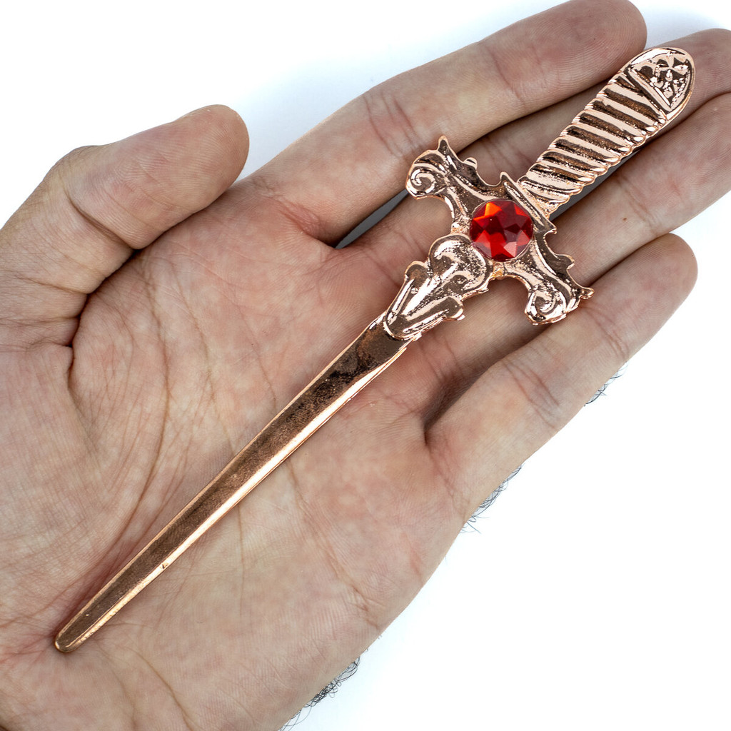 Athame Metal Cobre Brilhante 15 cm Pedra Vermelha Reforçado