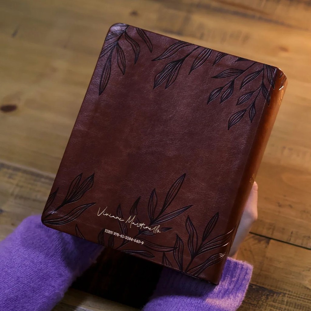 Bíblia Sagrada Mulheres | Viviane Martinello | NAA | Espaço para Anotações | Capa Luxo Folhas Marrom