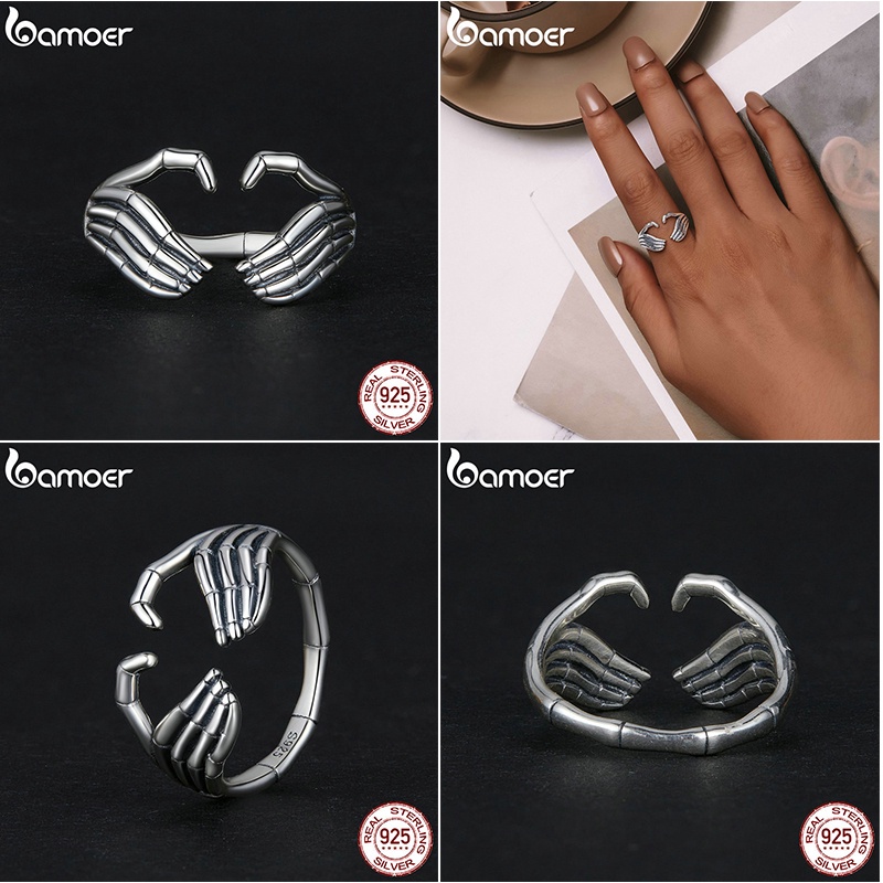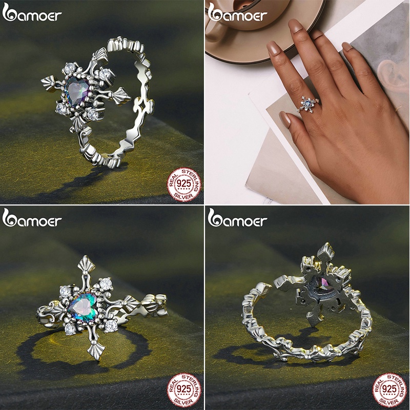 BAMOER 925 Prata Esterlina Vintage Halloween Anel , Coração , Borboleta , Cruz , Elemento Rosa Jóias De Moda Presentes Para Mulheres