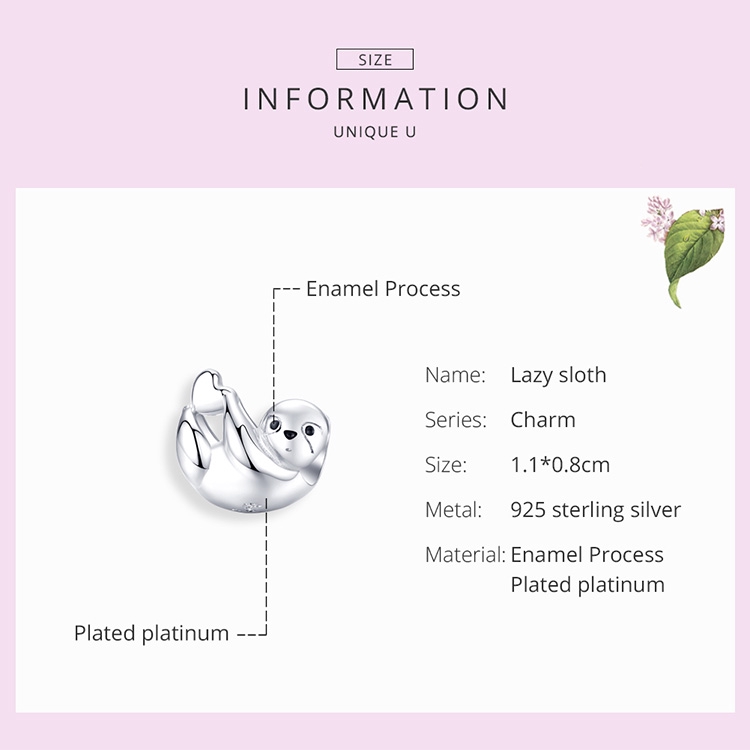 BAMOER 925 Silver Fashion Charm Lazy Sloth BSC109