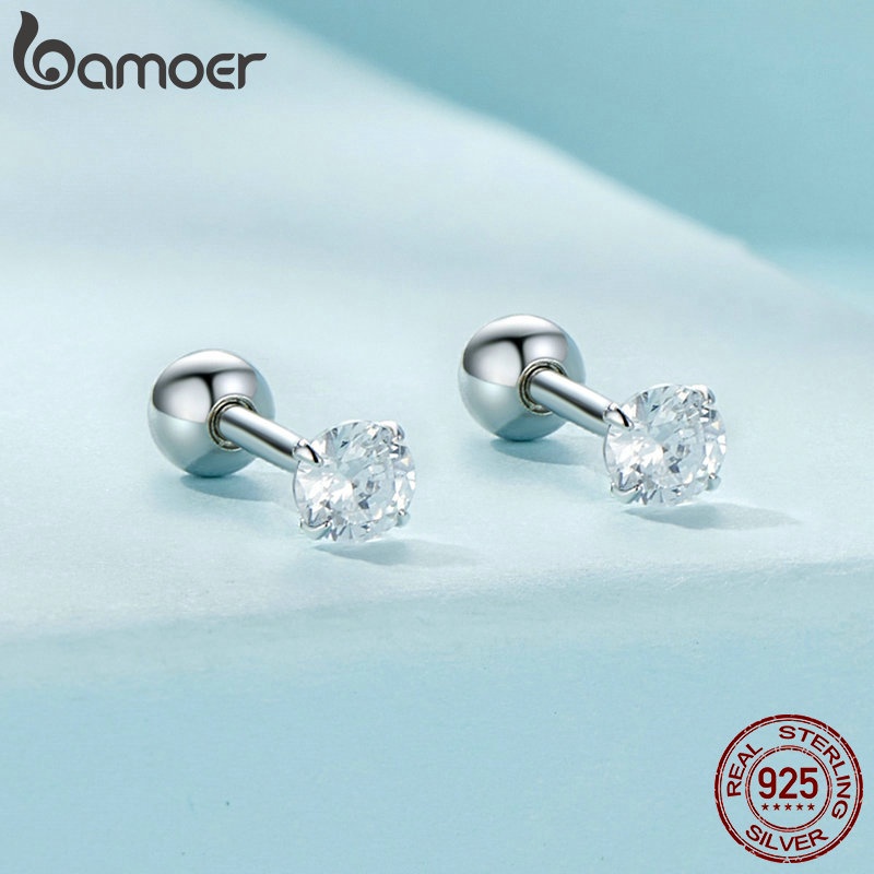 BAMOER Clássico Brincos Em Zircônio Branco 3 Tamanhos Design Simples Para Presentes De Joalheria Feminina