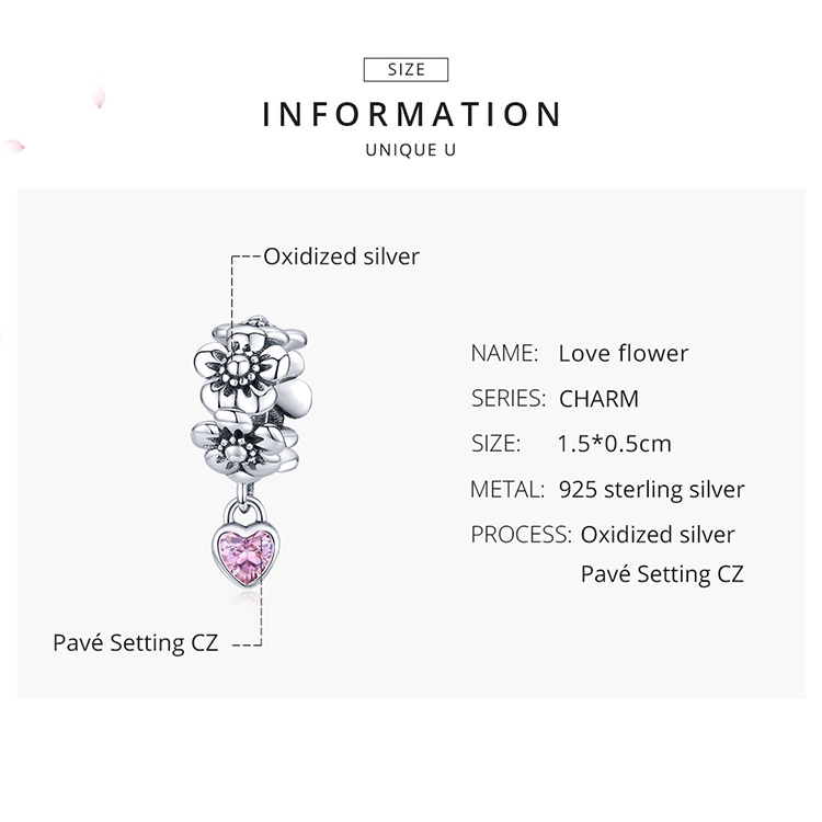 BAMOER Romantic Flower Series Love Flower Charm 925 Sterling Silver