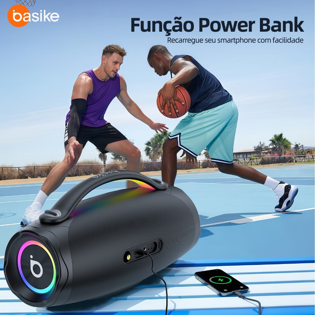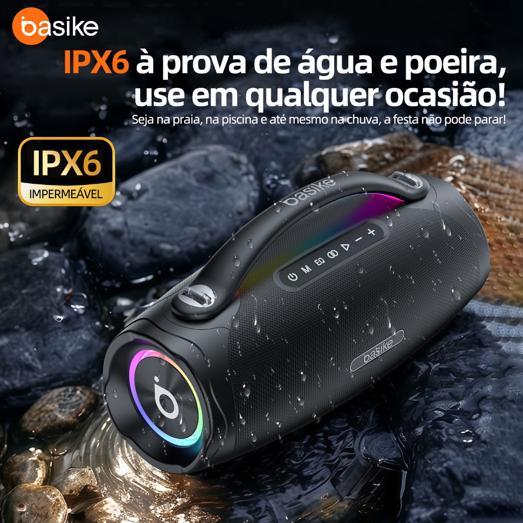 BASIKE Caixa de som 100W bluetooth portátil IPX6 RGB TWS HiFi Usb Pen Drive