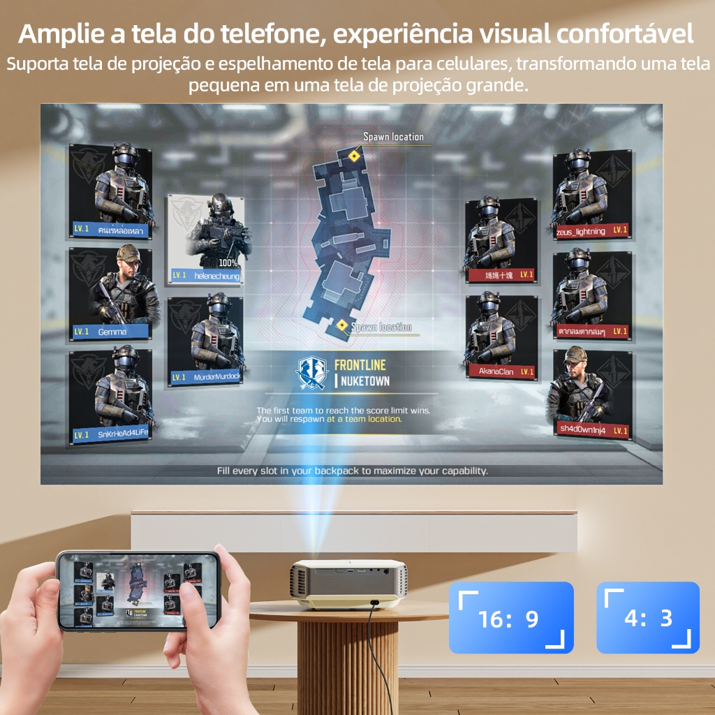 BETTDOW 15500LM Mini Projetor WiFi 8k Full HD 1080p Suporte Para Smartphones Android E