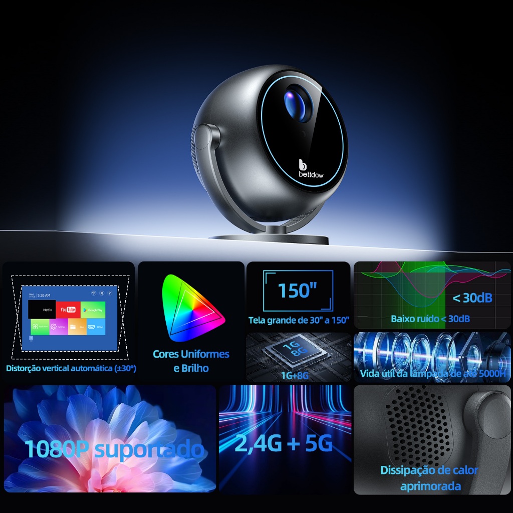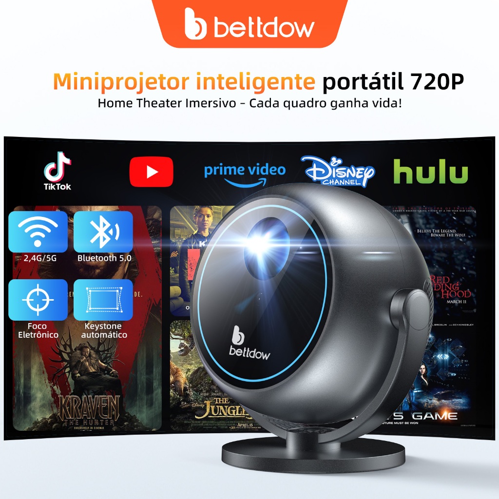 BETTDOW 180ANSI Hemisfério Mini Projetor 360 ° Foco Elétrico De Controle Remoto Com Resolução 720P HD 90 Suporte Giratór