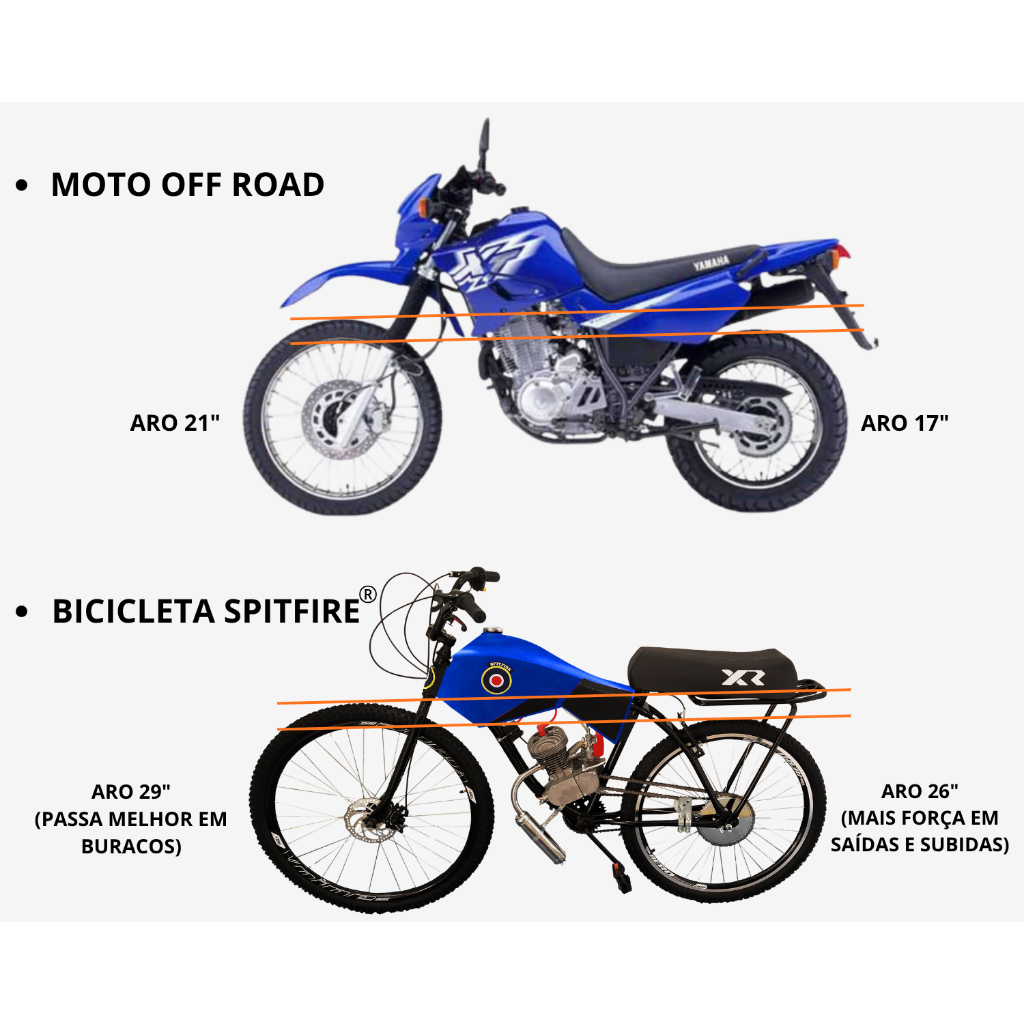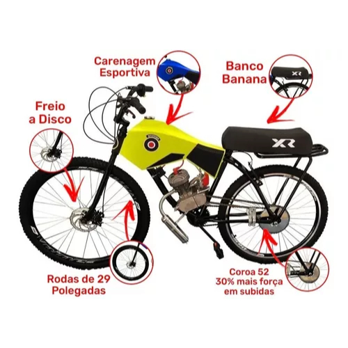 BICICLETA BIKE MOTORIZADA 80cc SPITFIRE® CARENADA COM BANCO XR (SEMI MONTADA) EXCLUSIVA