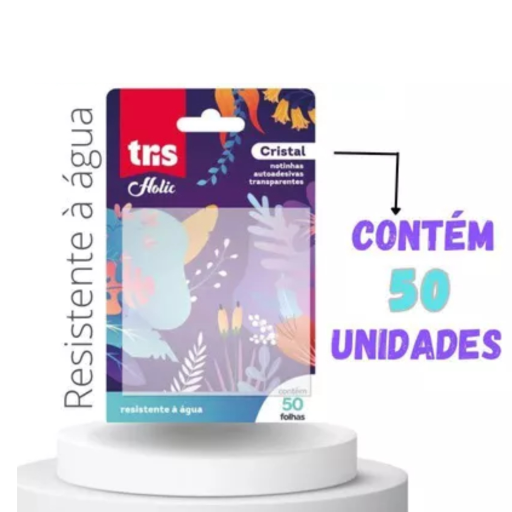 BLOCOS ADESIVO TRIS TRANSPARENTE 2 UNIDADES 75X75MM HOLIC CRISTAL 50 FOLHAS CADA
