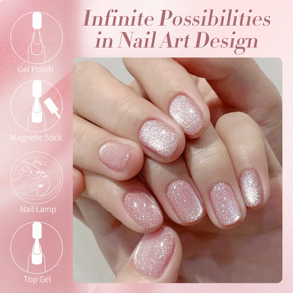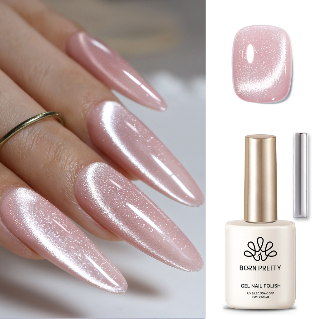 BORN PRETTY Milky Pink Cat Magnético Eye Gel Esmalte Glitter Brilhante Verniz UV 15ml