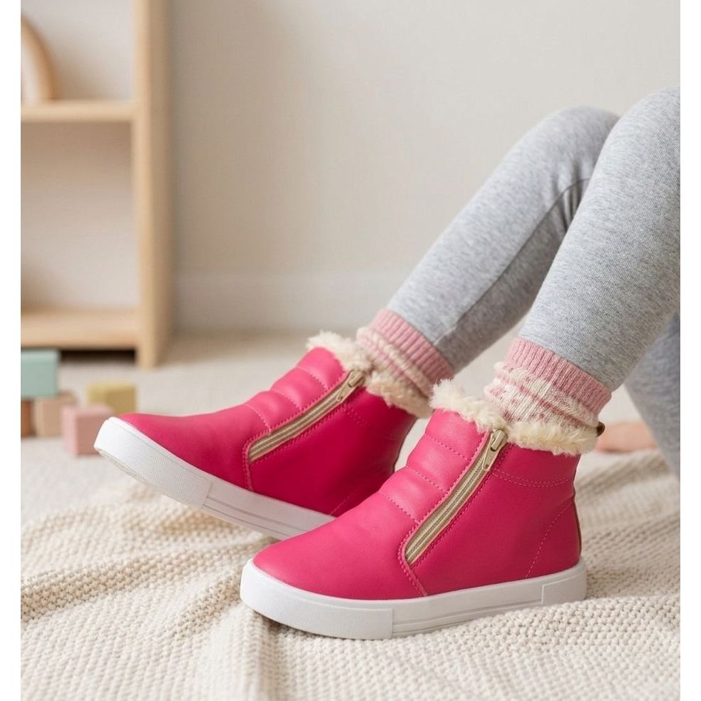 BOTA COTURNO TÊNIS CANO ALTO INFANTIL BABY MENINA FORRADA DE PELÚCIA SUPER MACIA