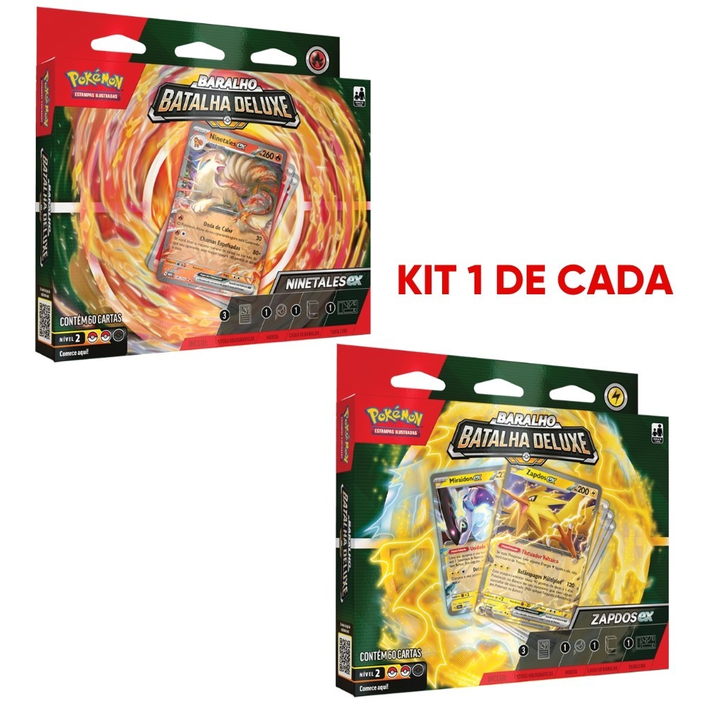 BOX POKÉMON DECK DE BATALHA DELUXE NINETALES EX OU ZAPDOS EX NV 2 COPAG ORIGINAL LACRADO 60 CARTAS PARA JOGAR TCG PTBR