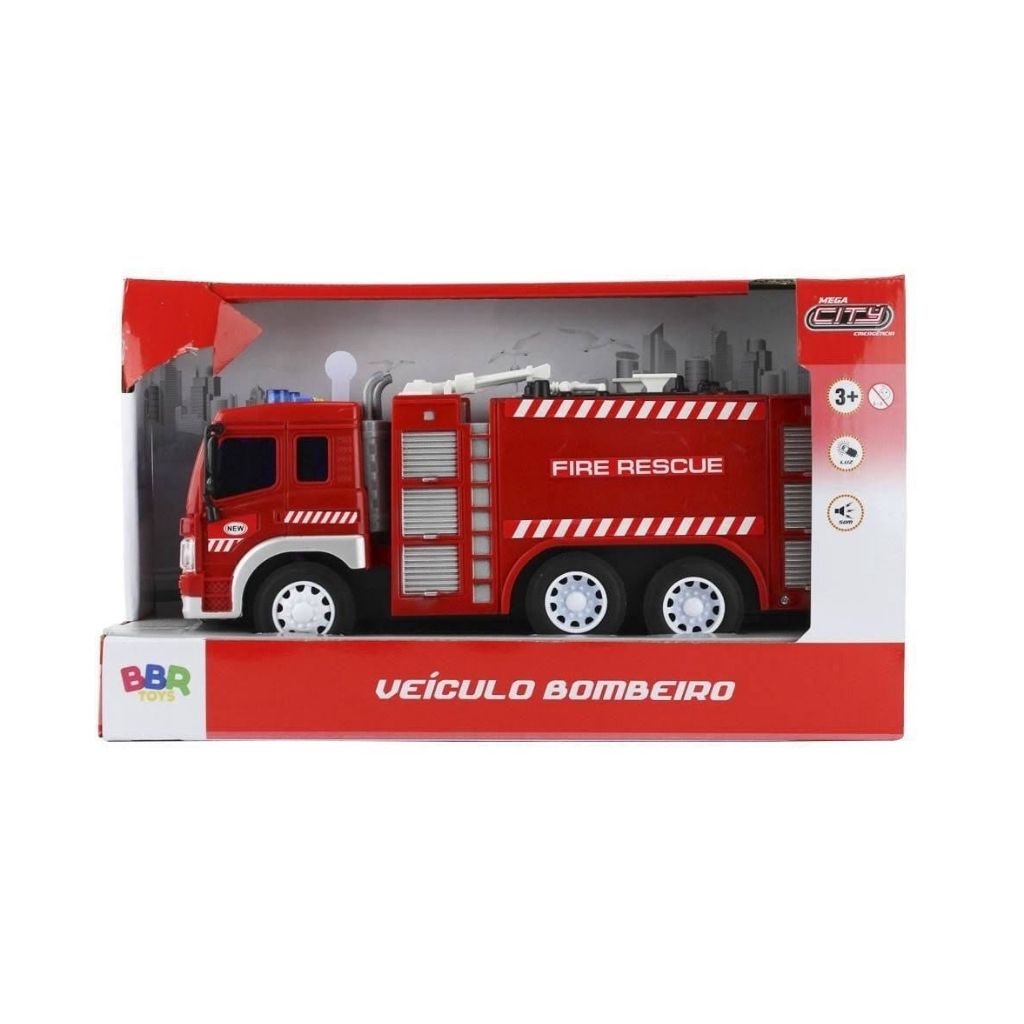 BRINQUEDO CAMINHAO VEICULO DE BOMBEIRO RESCUE VERMELHO BBR