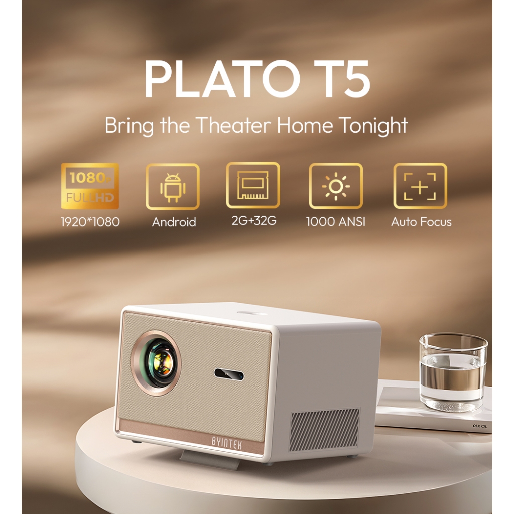 BYINTEK T5 Max Full HD 1080P Projetor 4K 1000ANSI Android WiFi 6 Foco Automático Profissionalbasss