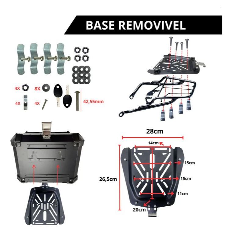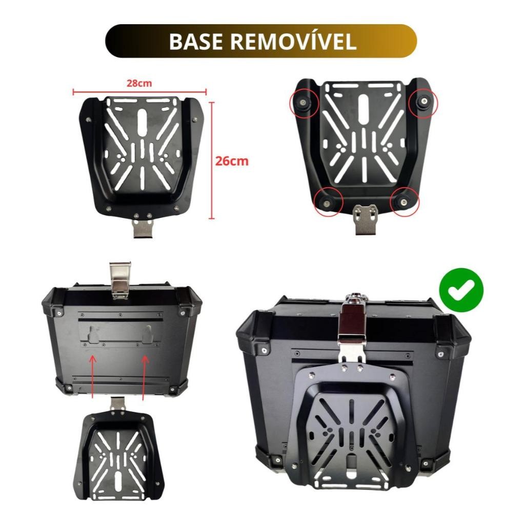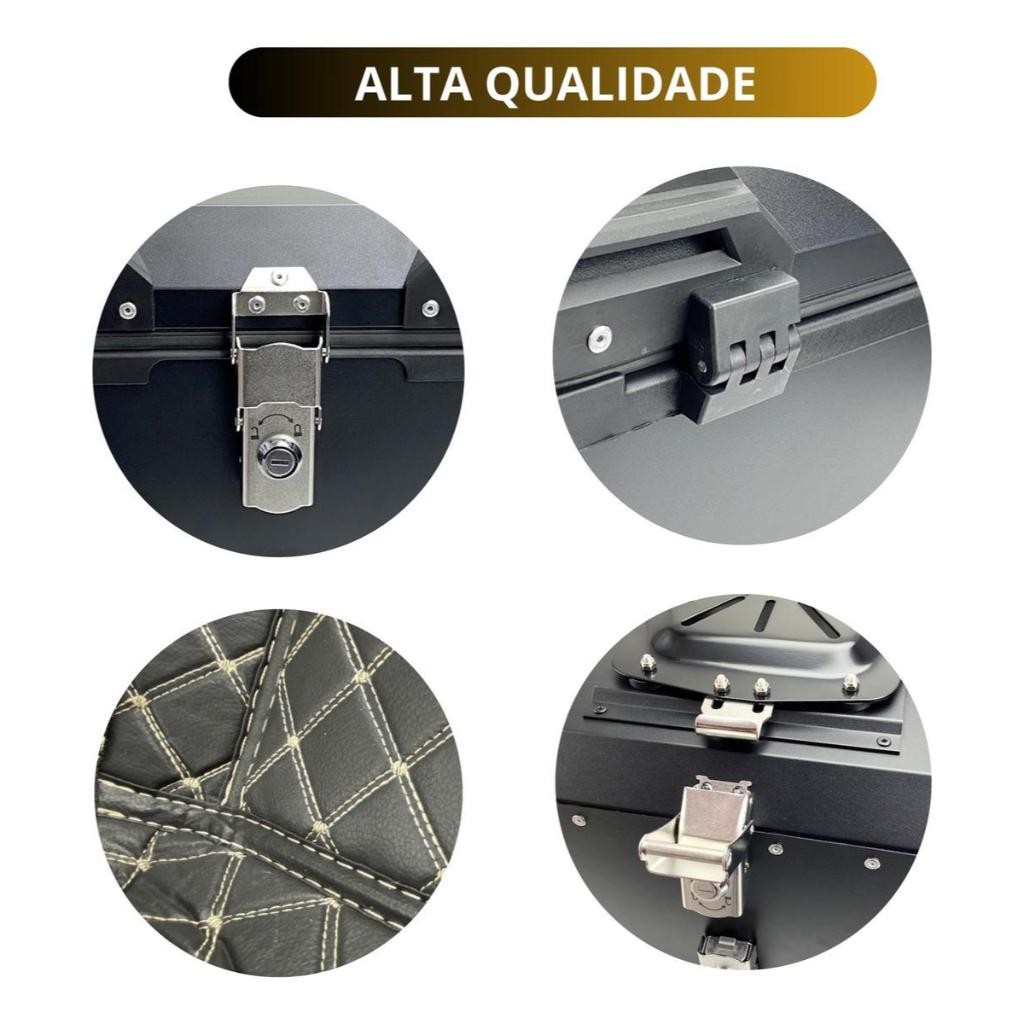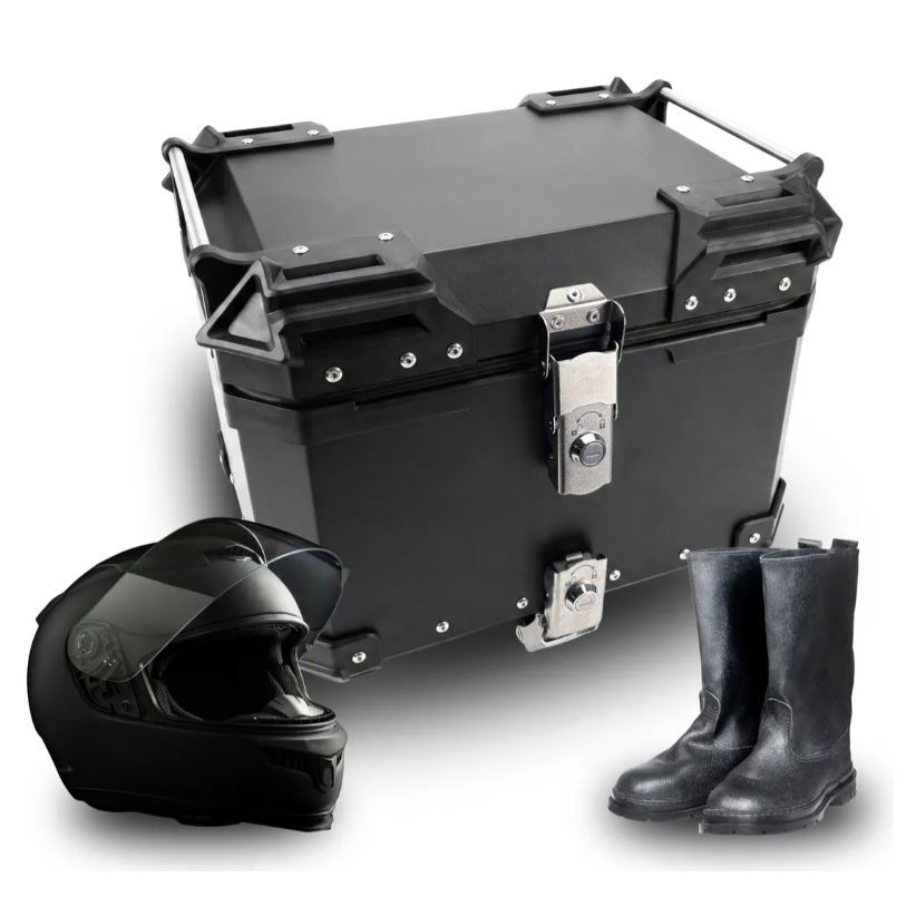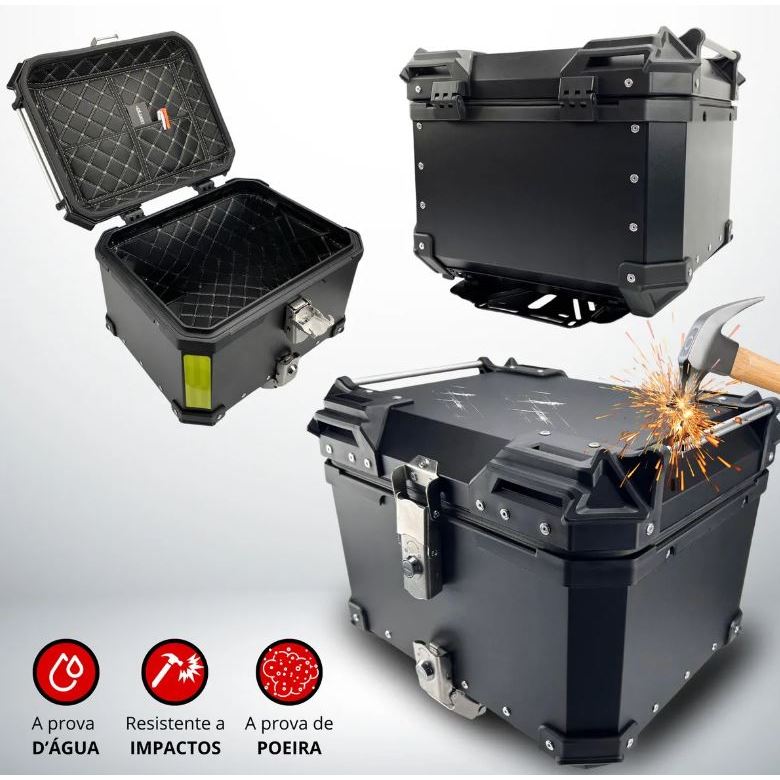 Baú 45L Alumínio ACM Reforçado Preto Bauleto Bagageiro Universal Com Suporte
