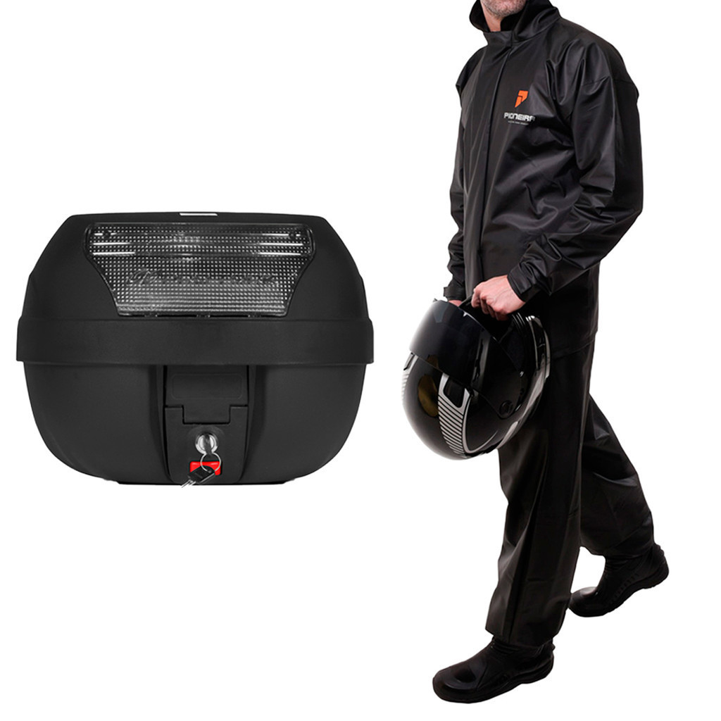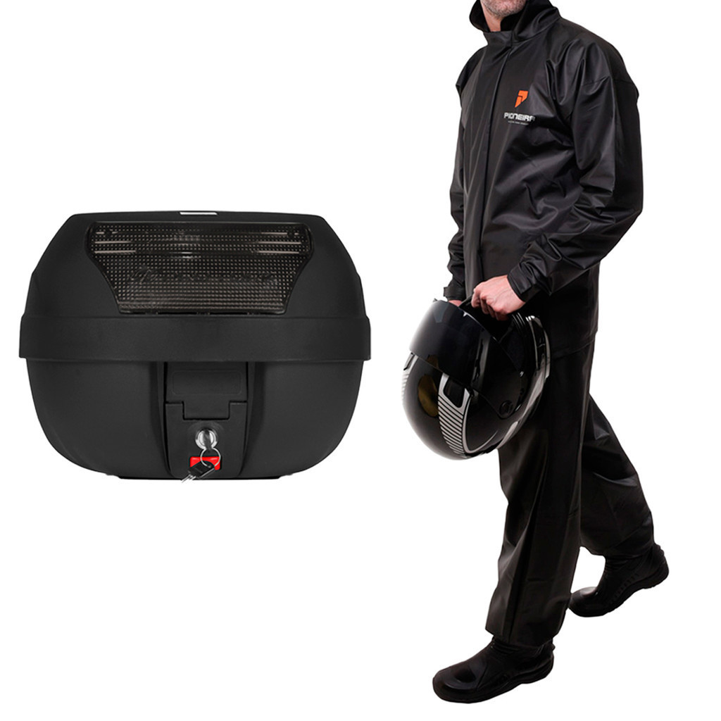 Baú Bauleto Moto Pro Tork Smartbox 28 Litros Pro Tork + Capa de Chuva Combate Com Gola Pioneira