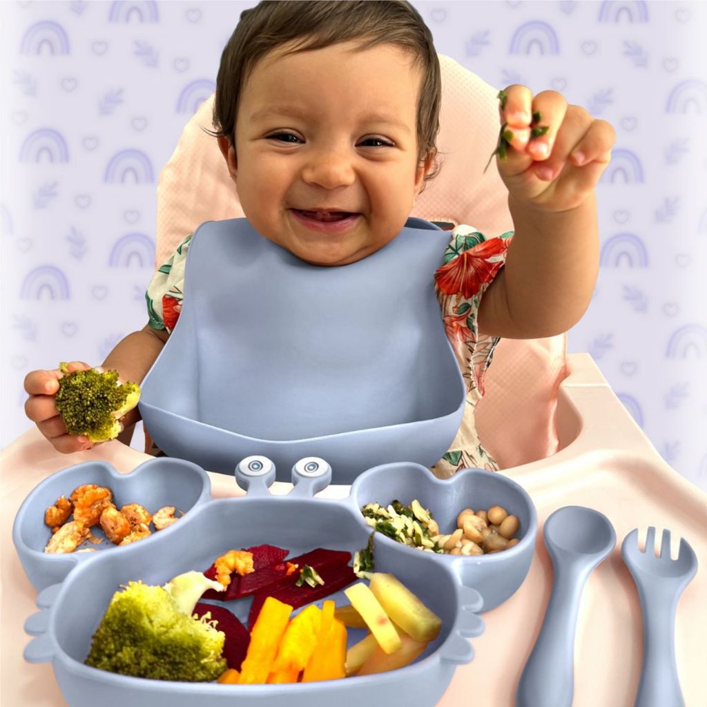 Babador Silicone Bebê Prato Talher Flexível Ventosa Refeição