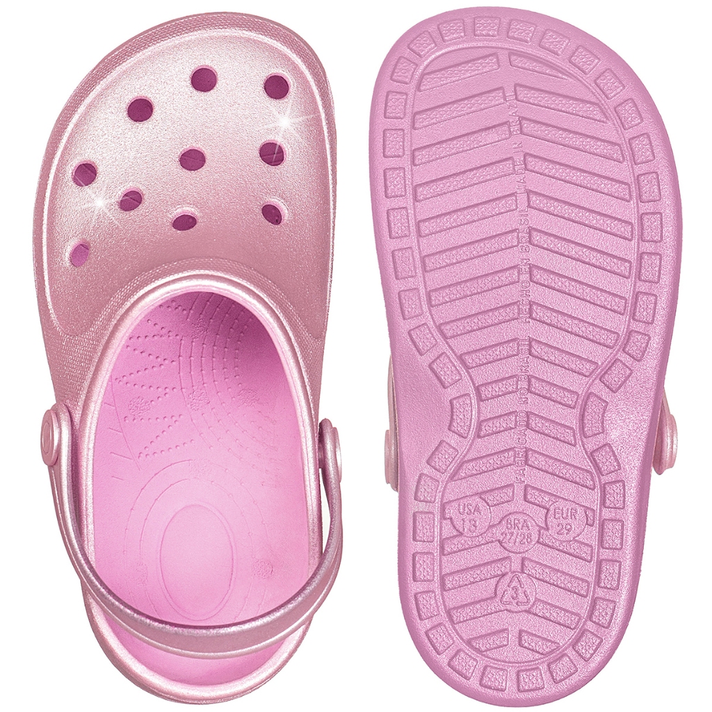 Babuche Infantil Metalizado Sandália Feminina Menina Criança Antiderrapante Moda Chinelo Calce Fácil