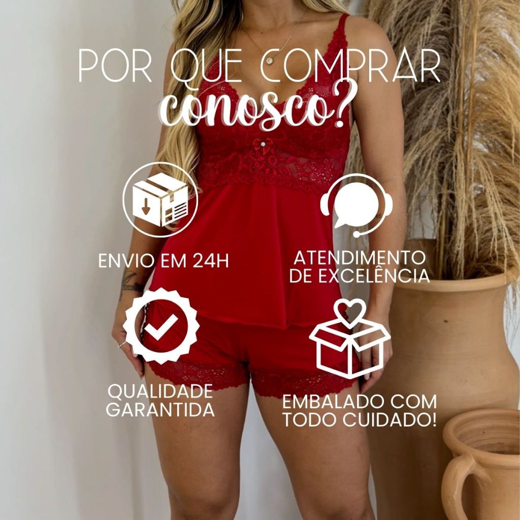 Baby Doll Feminino Adulto Rendado com Shorts Macio e Confortável