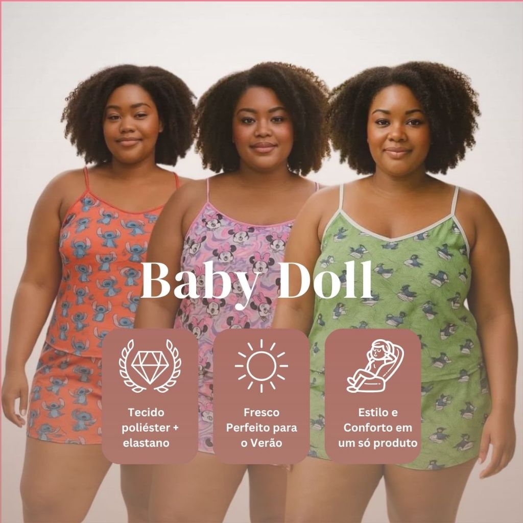 Baby Doll Feminino Plus Size Microfibra | Kit 2 Conjuntos | Moda Noite G1 G2 G3