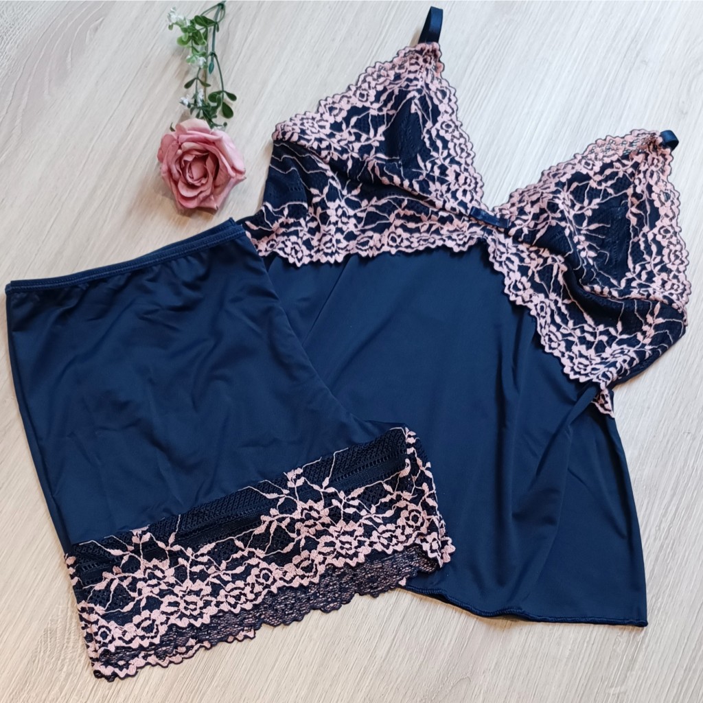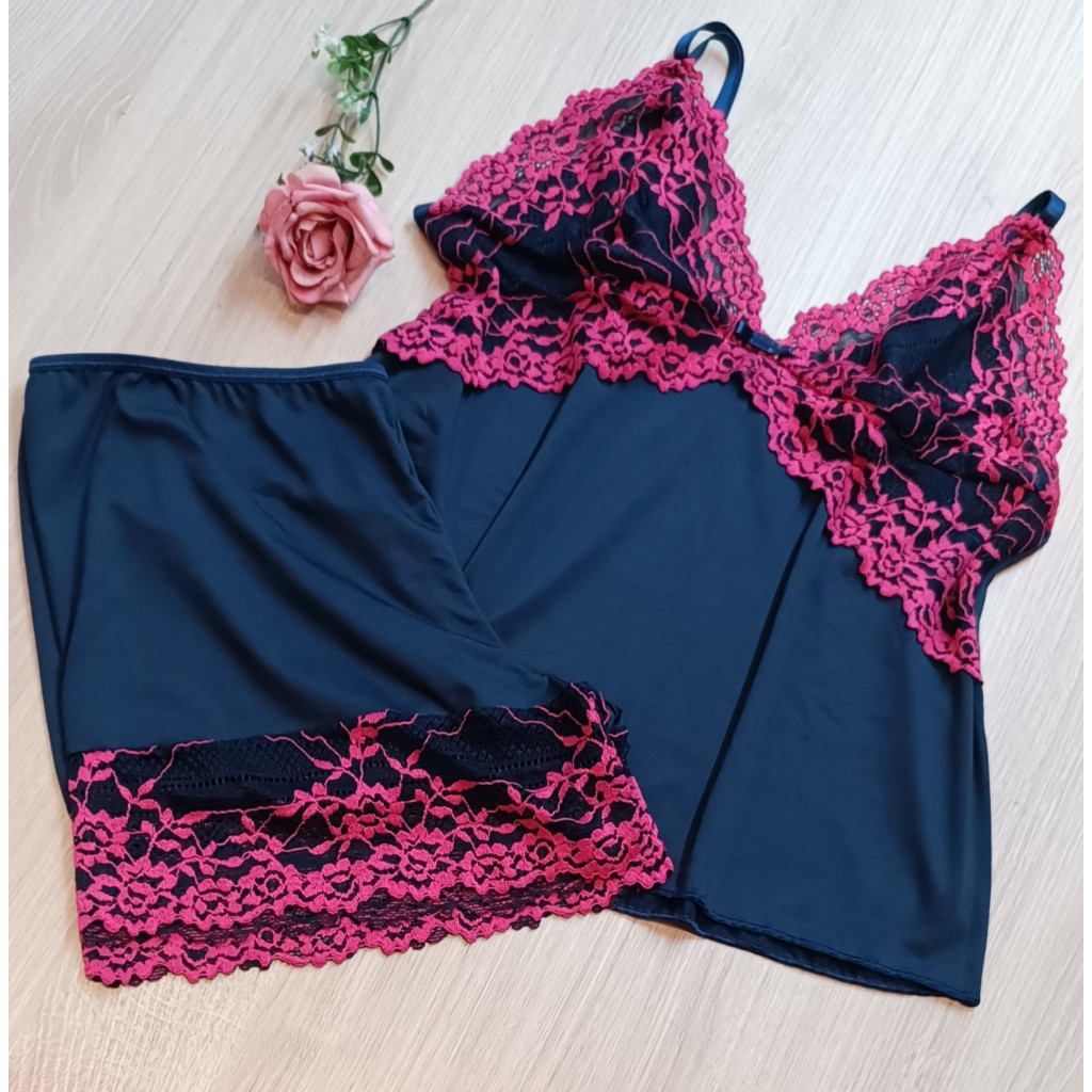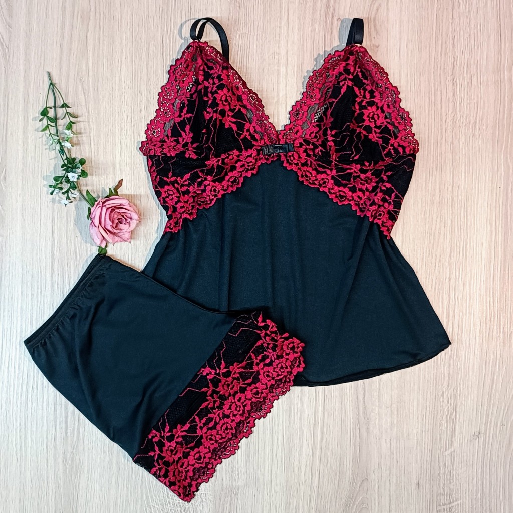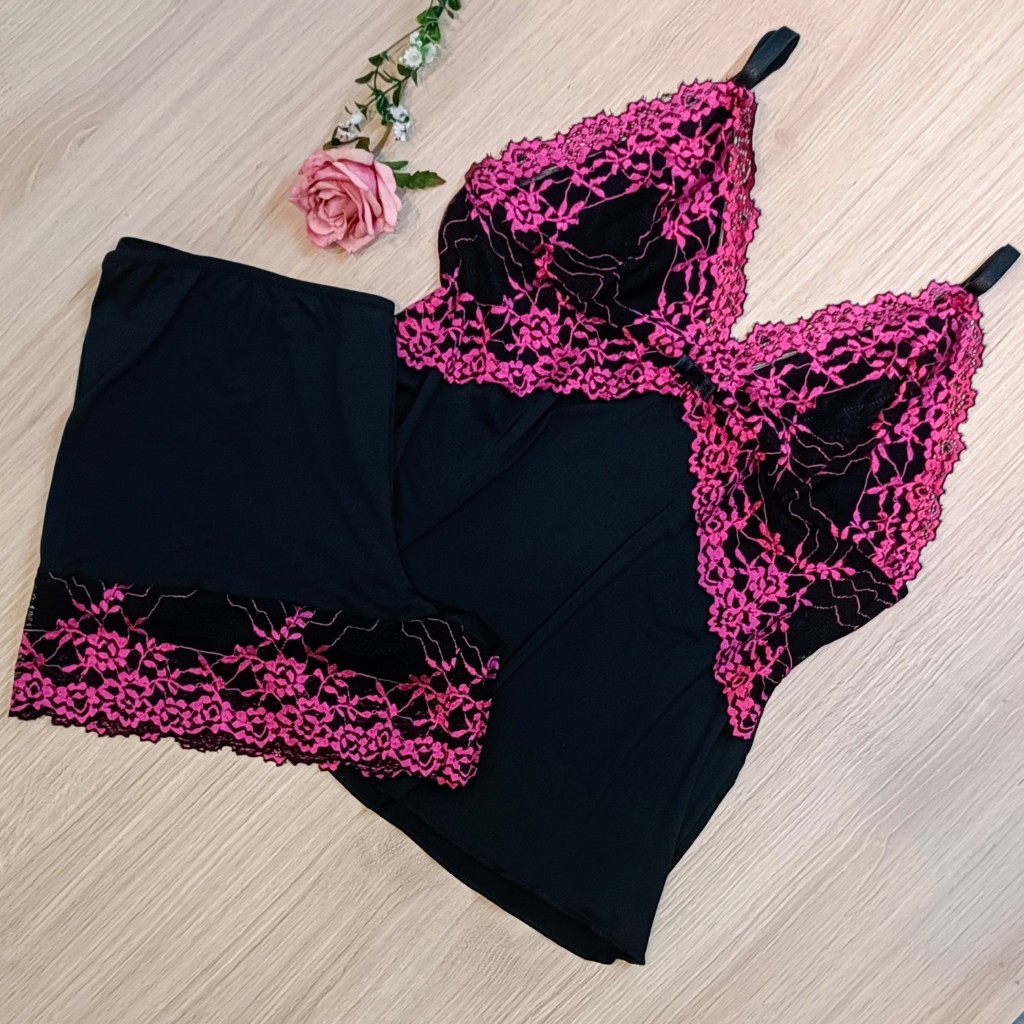 Baby Doll Microfibra Renda Bicolor Conforto Sem Bojo Forrado Pjama-539