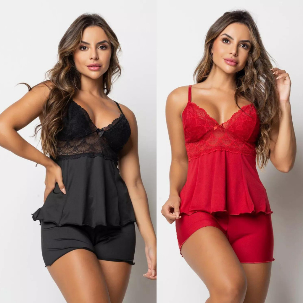 Baby Doll Sexy 2/Pec Pijama Feminino Short Doll Feminino Luxo