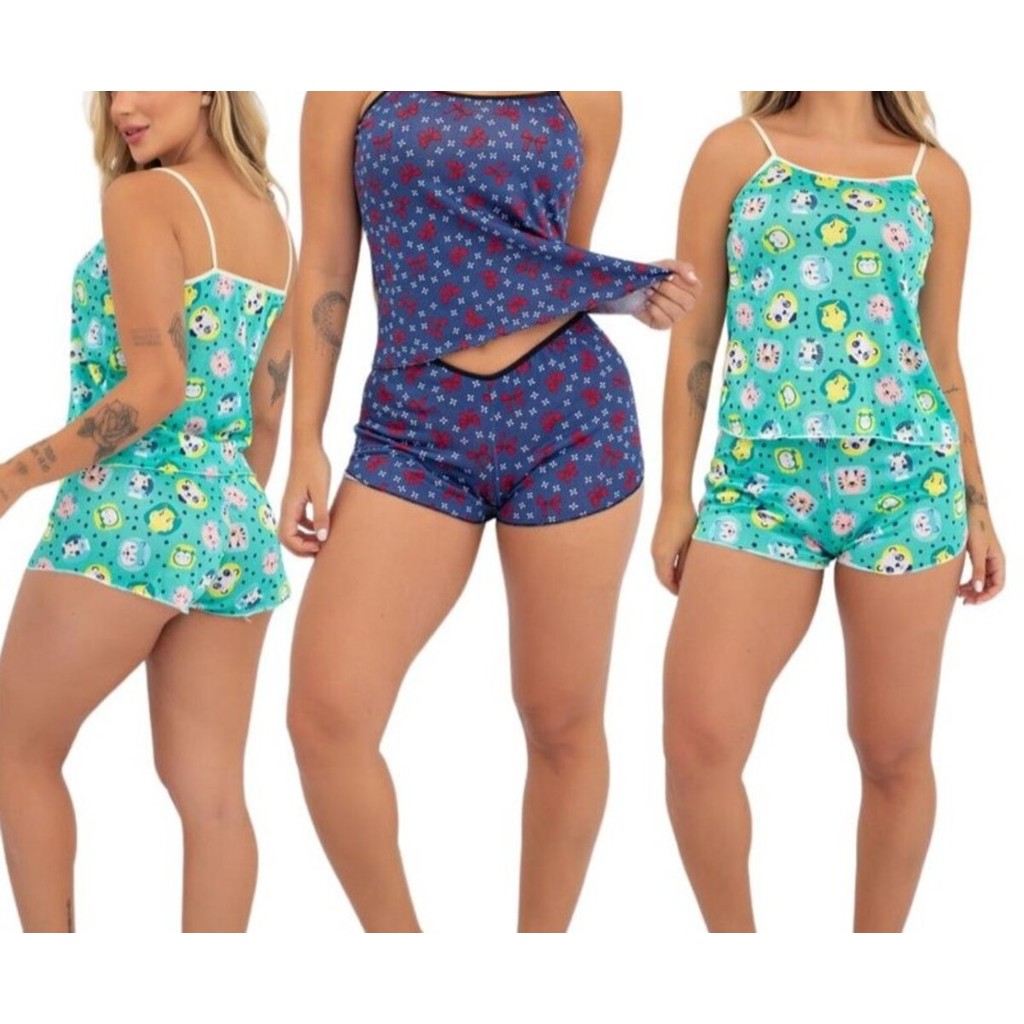 Baby Doll Short Doll Alcinha Estampado Pijama Feminino Roupa para dormir Verão Confortável Fresquinho